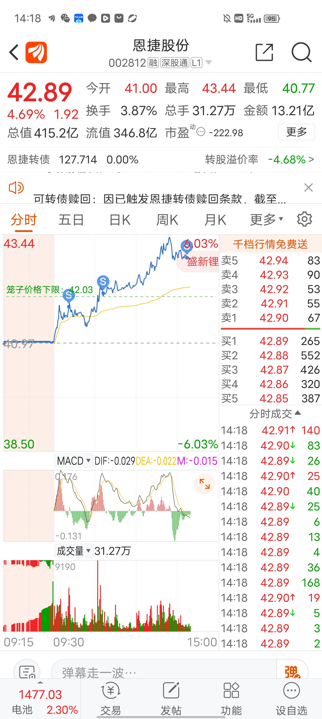 $恩捷股份(SZ002812)$ 被30日线和20日线压住了,暂时上不去了,明天低开的概率很大