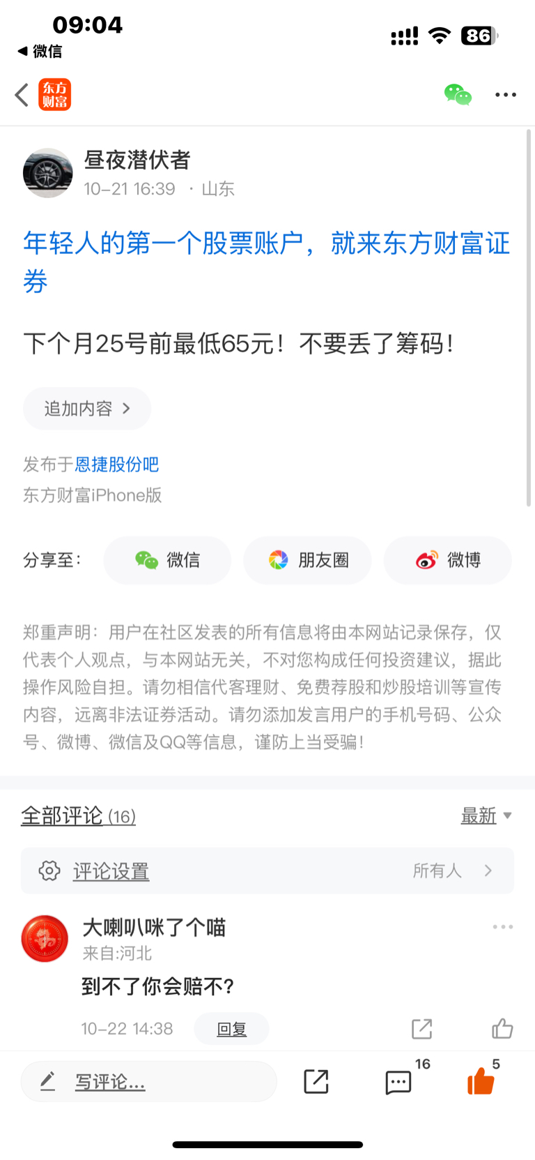 温馨提示: 1.根据《证券法》规定,禁止编造、传播虚假信息或者误导性信息,扰乱证券市场;2.用户在本社区发表的所有资料、言论等仅代表个人观点,与本网站立场无关,不对您构成任何投资建议。用户应基于自己的独立判断,自行决定证券投资并承担相应风险。《东方财富社区管理规定》