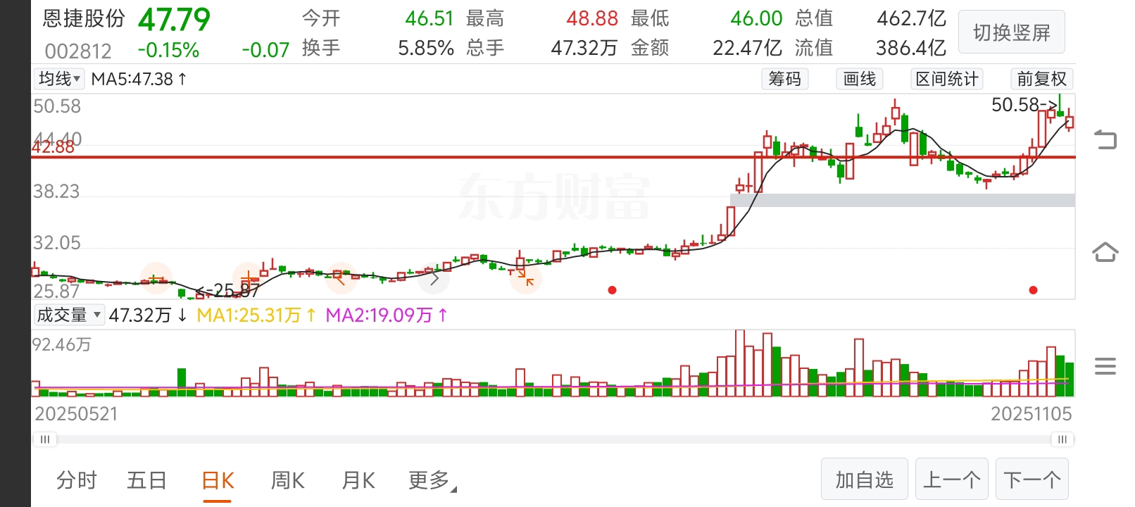 $恩捷股份(SZ002812)$ 趋势上,再度站在牛熊分界线上方,涨停后进行调整,资金放量流入。分批买入后总仓位控制在20%以内。