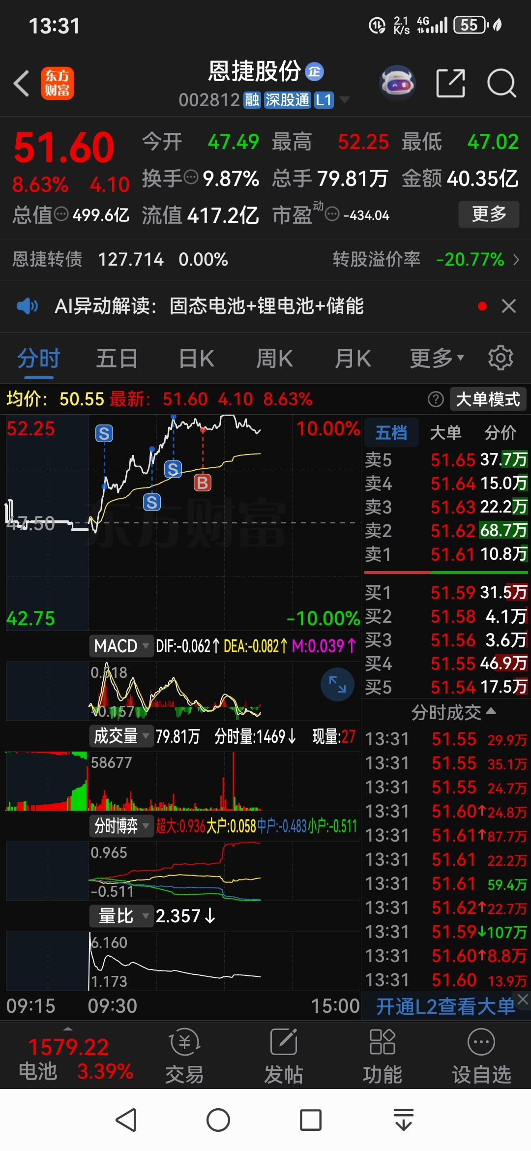 $恩捷股份(SZ002812)$ 今天被驴t了