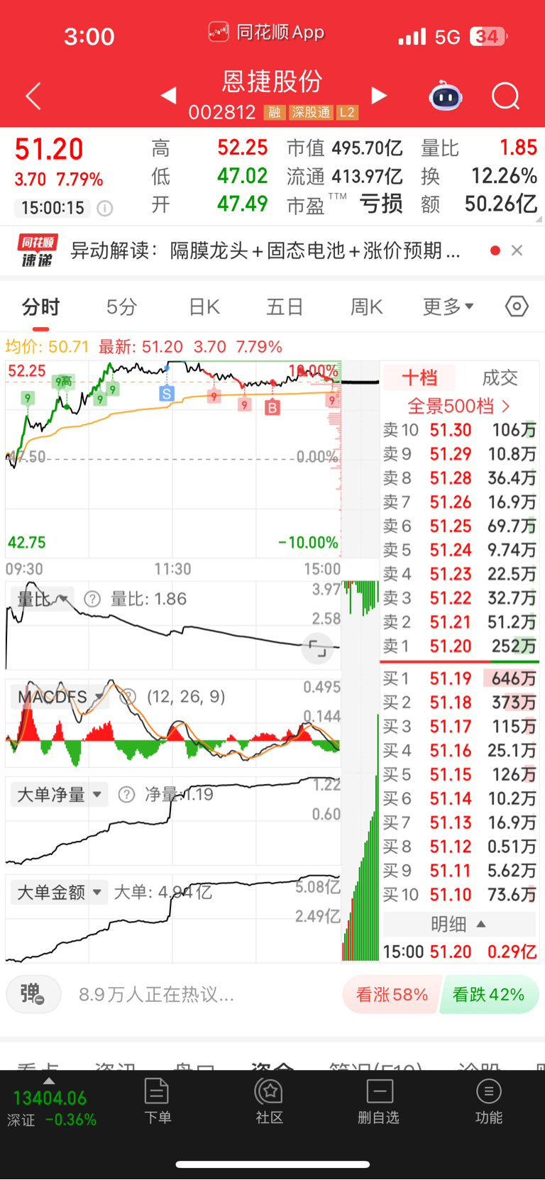 $恩捷股份(SZ002812)$ 继续格局,放这么大量,能接的只有主力。