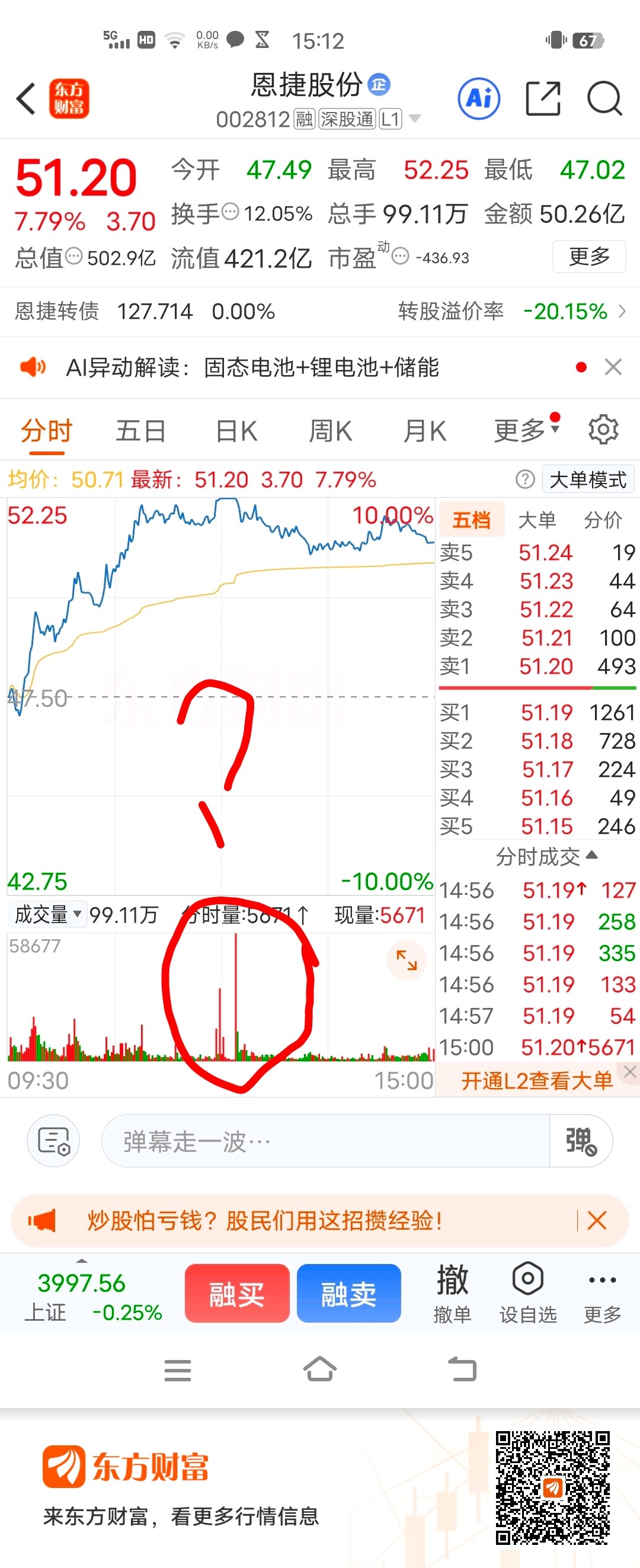 $恩捷股份(SZ002812)$ 别想着还有多大的涨幅了,上周四、五两天涨停板位置,已经出货了过千万股,明天等着回调就好了!