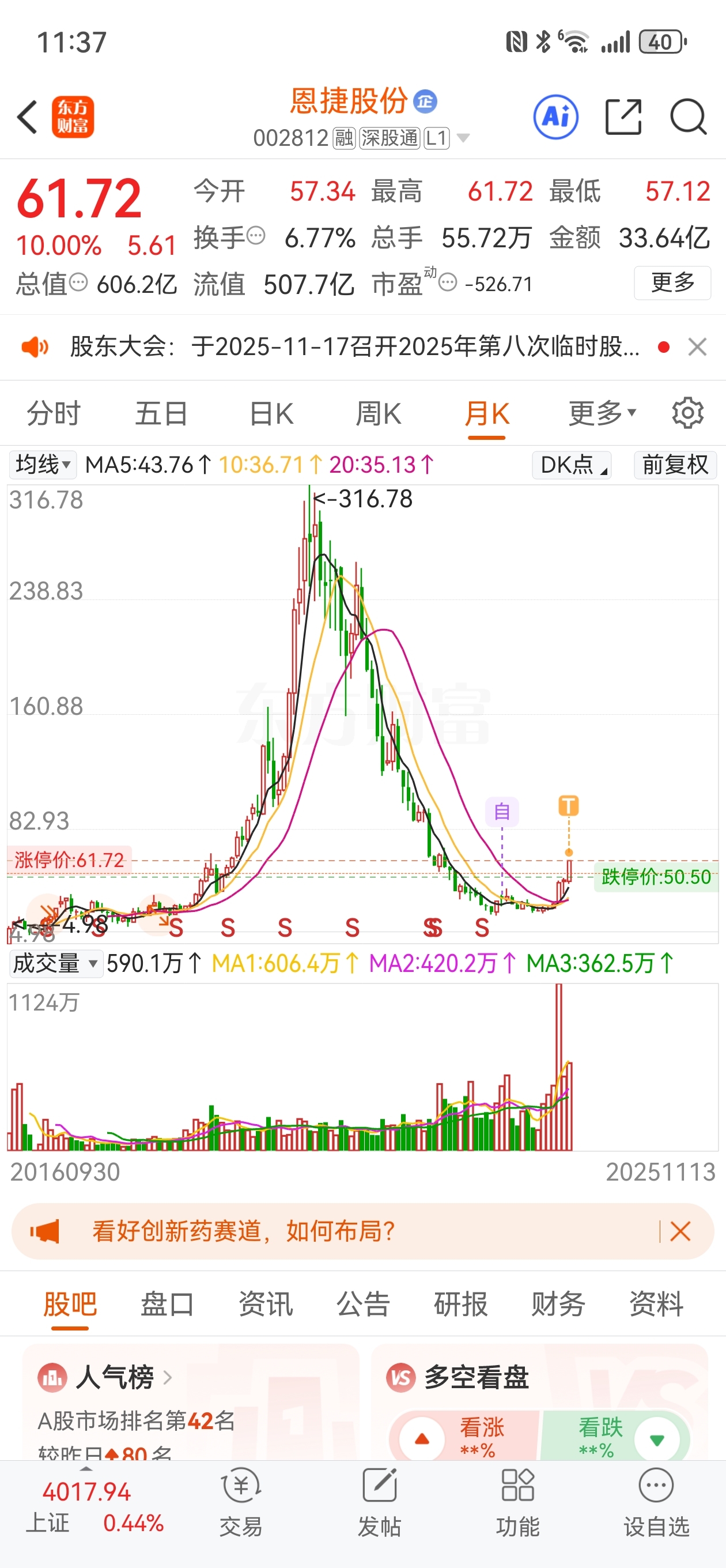 $恩捷股份(SZ002812)$ 大佬们,是趋势来了吗?