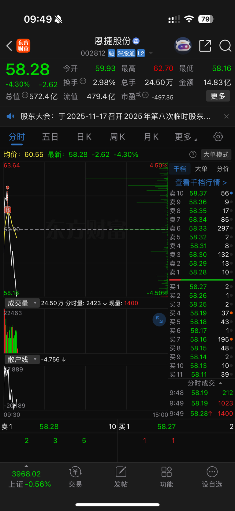 $恩捷股份(SZ002812)$ 被我买崩了?????