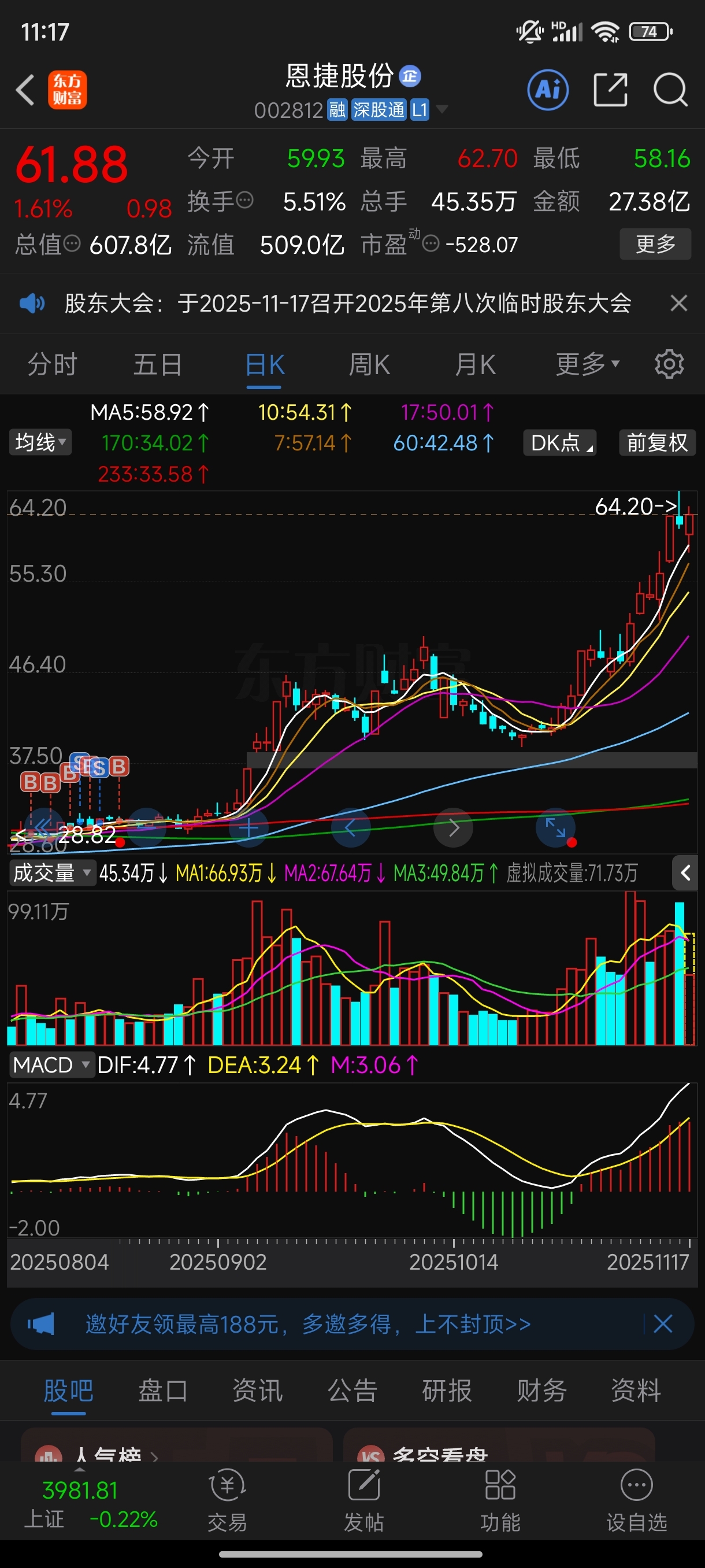 $恩捷股份(SZ002812)$ 自从放弃做t,失去了很多,比如:烦恼。