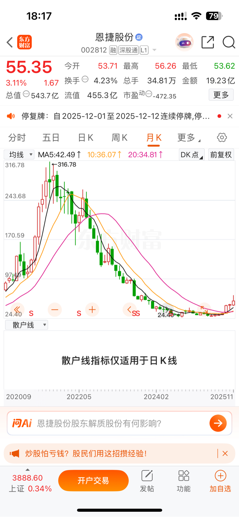 $恩捷股份(SZ002812)$ 这才哪到哪啊???先到255再说