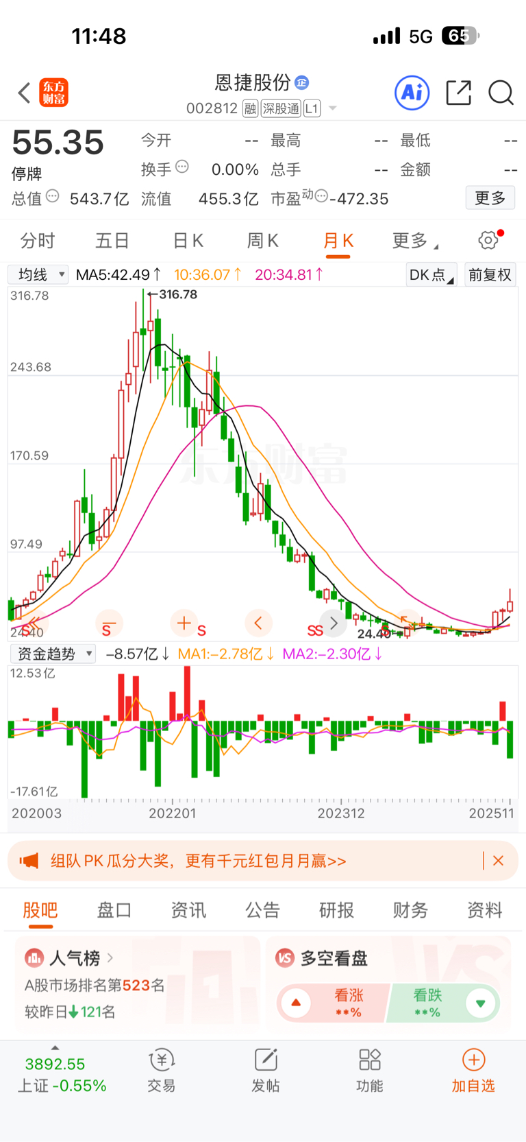 $恩捷股份(SZ002812)$ 复牌上个199没问题吧!还有比这更安全的月线吗?买股就要买安全!!!199块以下买都不算贵!!