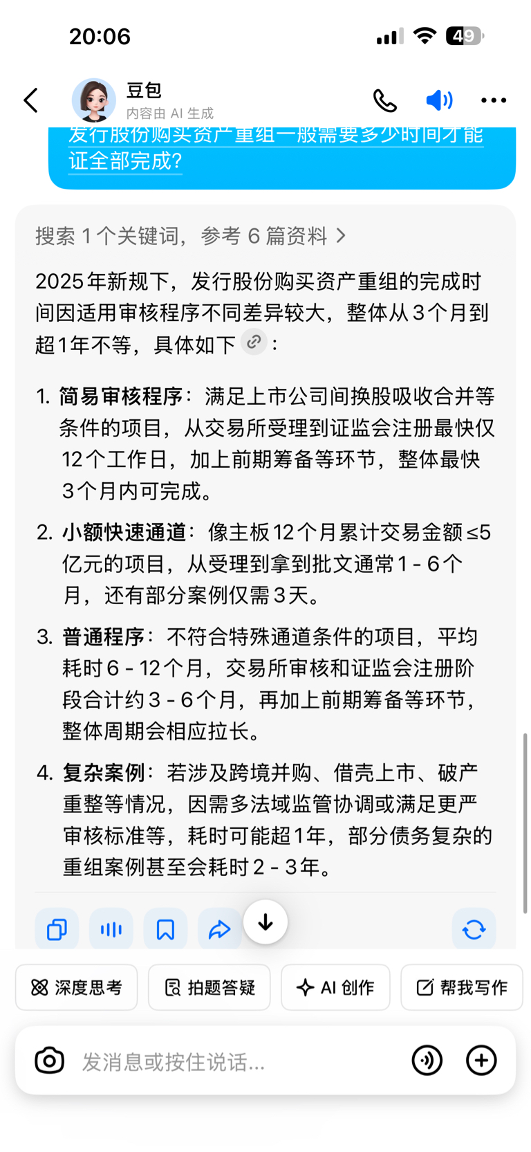 成功了,数板吧!上面说了最快也要3个月,被收购的上市公司审计账目审计10个工作日