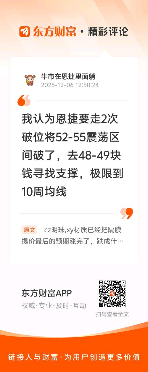 cz明珠,xy材质已经把隔膜提价最后的预期涨完了,跌成什么样的了,还有人觉得恩捷要连板,高开赶紧跑吧,电池板块整体没有一波像样的回调都不要碰,11月12月的电池就是要走半导体、机器人、消费电子板块的路,一次下跌二次破位阴跌成交量萎靡,年底缩量的行情资金去做调整到位的机器人和军工不好么,去给你们解套想得怪好,一切以走势为准,恩捷指标和空间是没有调整到位的。
