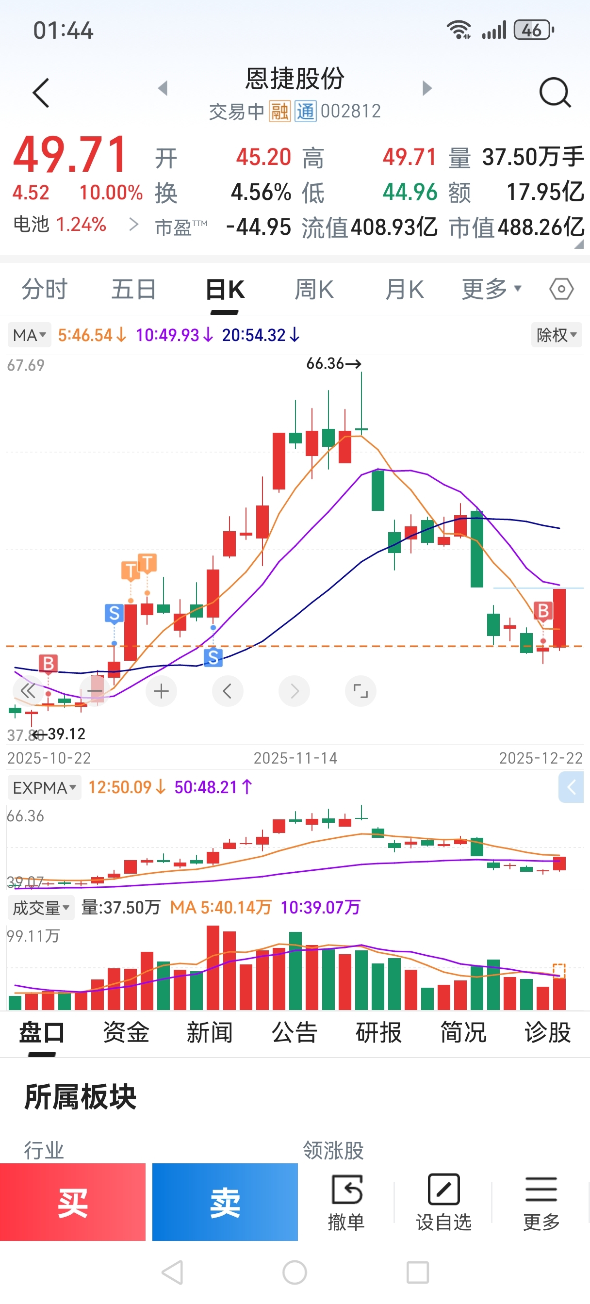 $恩捷股份(SZ002812)$ 明天我就要减仓了哈