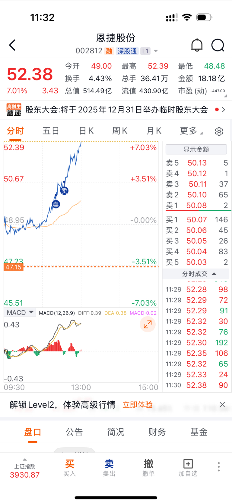 $恩捷股份(SZ002812)$ 差点开盘卖了,坚持不住