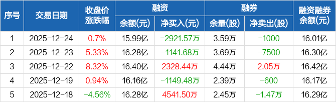 恩捷股份:融资净偿还2921.57万元,融资余额15.99亿元(12-24)