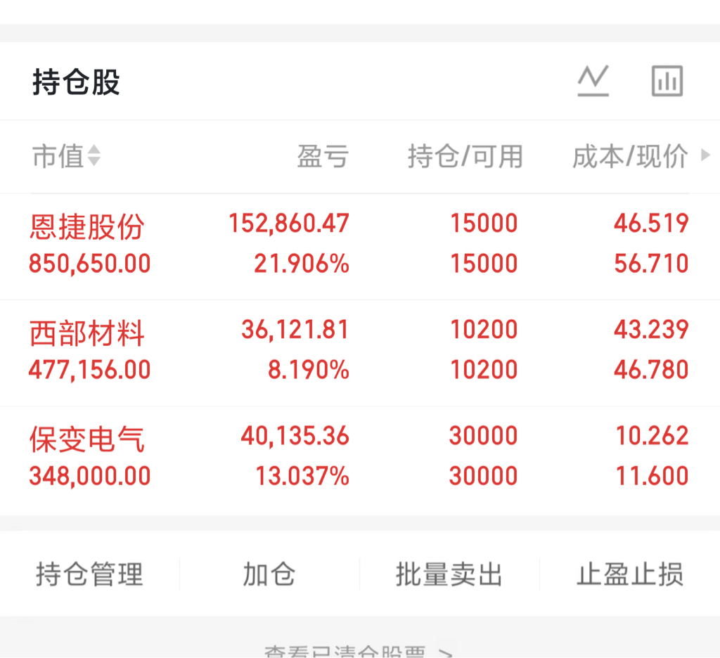 $恩捷股份(SZ002812)$ $保变电气(SH600550)$ $西部材料(SZ002149)$