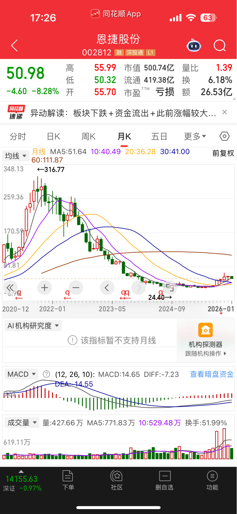$恩捷股份(SZ002812)$ 今天-8%,挺难受的,买了没两三天,就遇到暴击。每每看到这个走势,就觉得这货能起来。