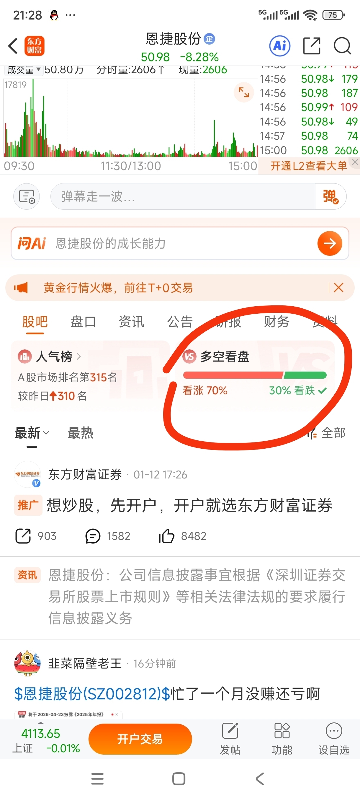 温馨提示: 1.根据《证券法》规定,禁止编造、传播虚假信息或者误导性信息,扰乱证券市场;2.用户在本社区发表的所有资料、言论等仅代表个人观点,与本网站立场无关,不对您构成任何投资建议。用户应基于自己的独立判断,自行决定证券投资并承担相应风险。《东方财富社区管理规定》
