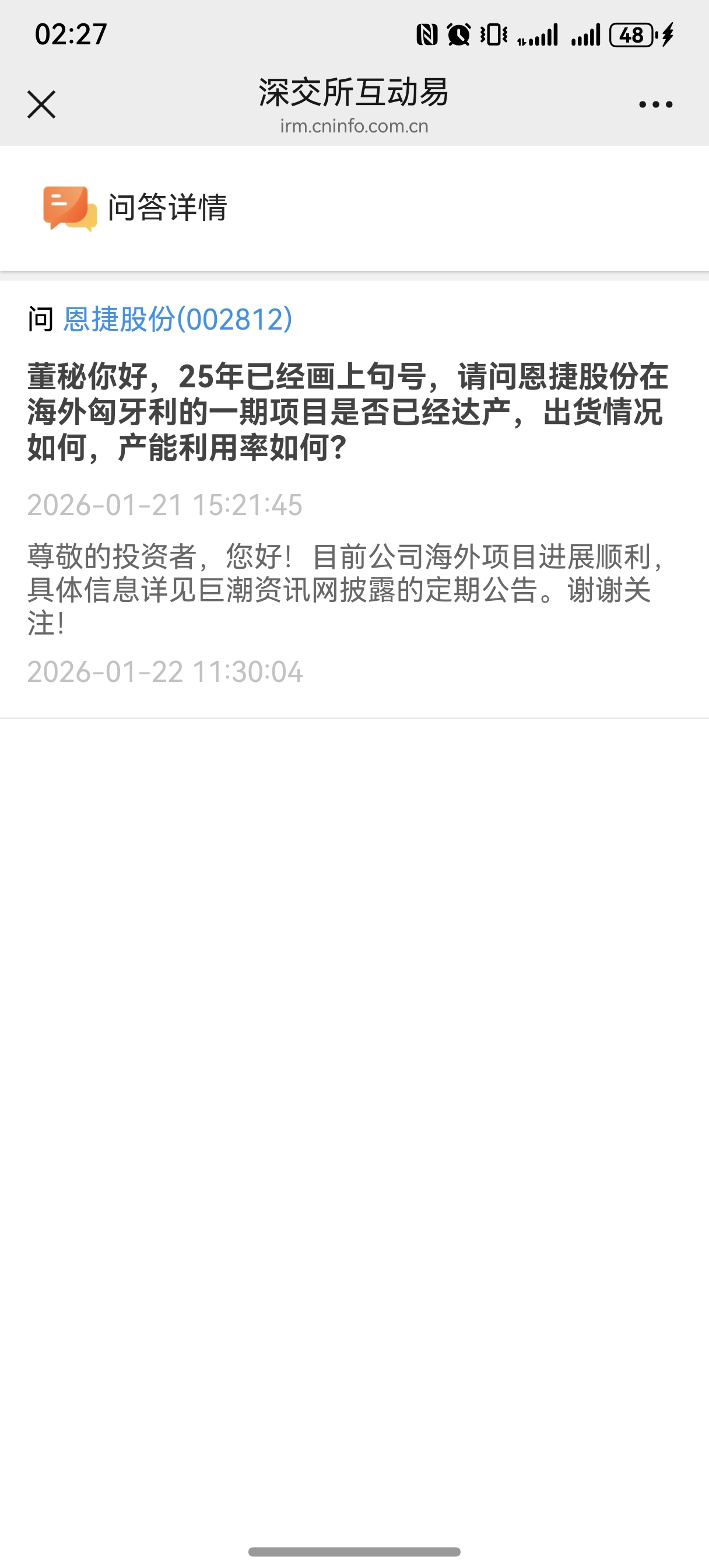 $恩捷股份(SZ002812)$ 海外项目进展顺利,主力狗砸这样?