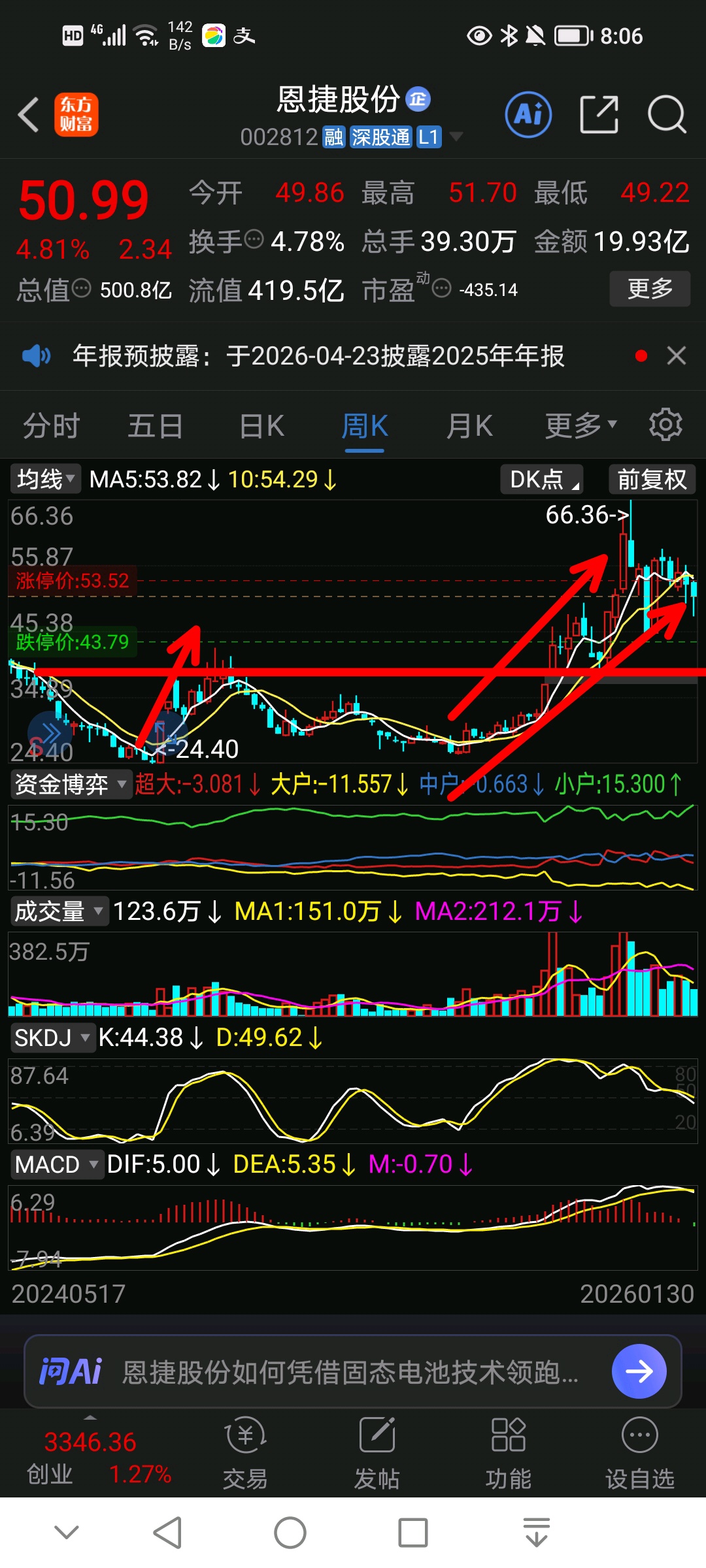 $恩捷股份(SZ002812)$ 24涨到60,涨幅不小,也不便宜了,能跌回40左右,不妨再来抄底一次,周线级别技术面是空方走势,日线反弹最好找机会减仓吧