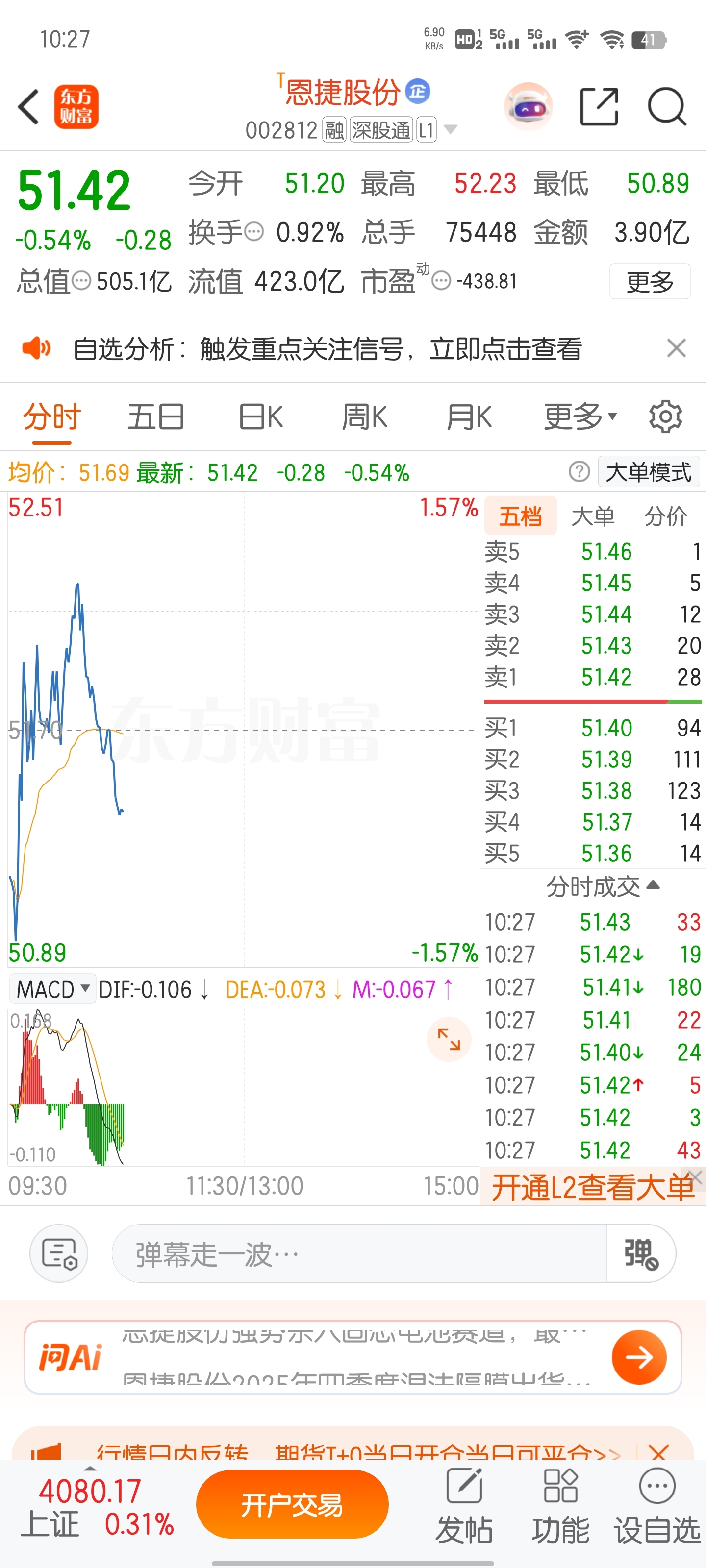 $恩捷股份(SZ002812)$ 每天的套路:拉一下就飞流直下三千尺
