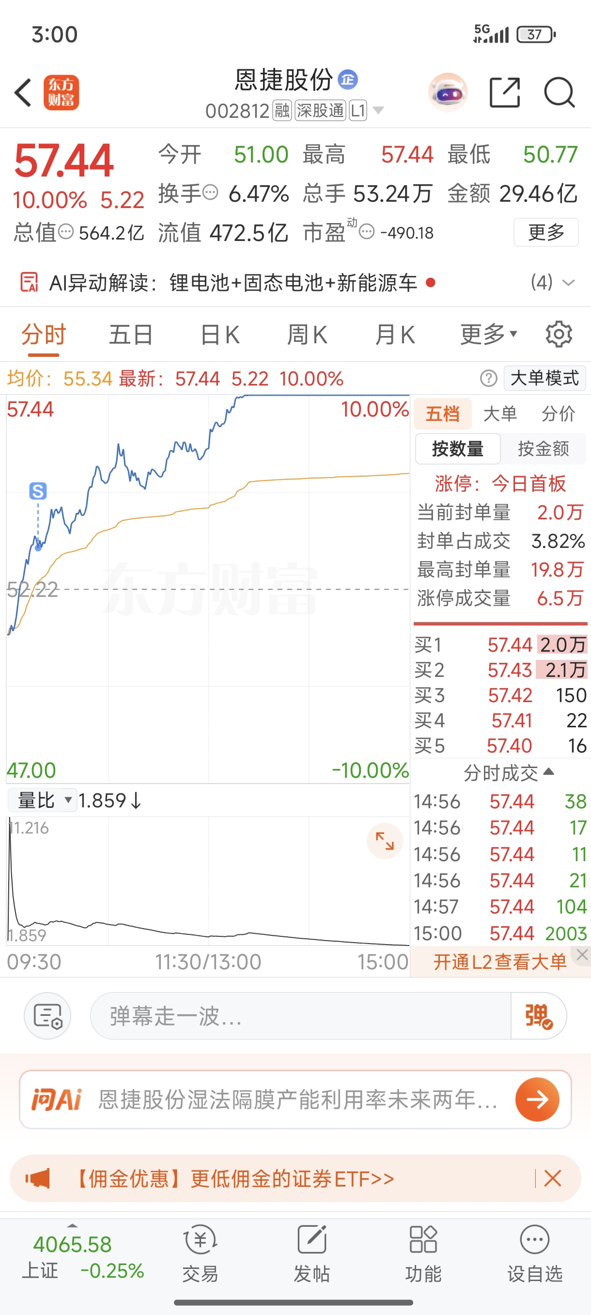 $恩捷股份(SZ002812)$ 气死了我一卖你就涨