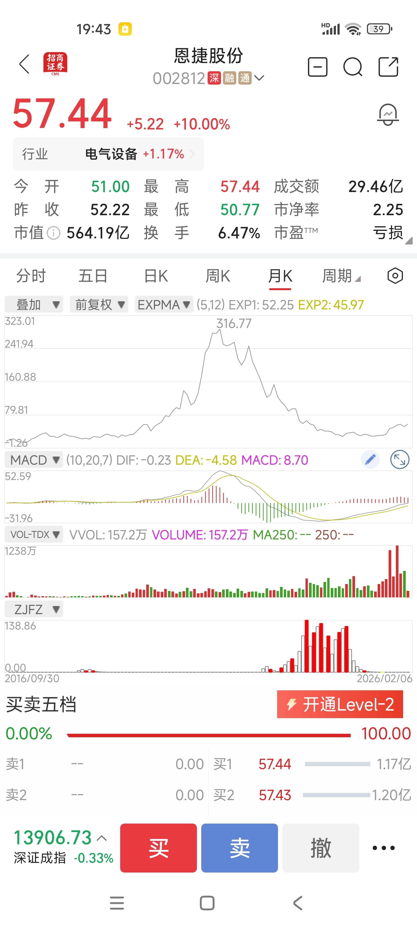 $恩捷股份(SZ002812)$ 这垃圾从高位三百多跌到二三十块钱,大家看看是不是儿。现在一个涨停又热闹了。