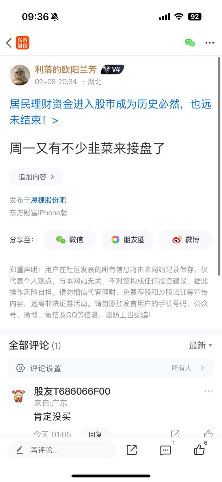 温馨提示: 1.根据《证券法》规定,禁止编造、传播虚假信息或者误导性信息,扰乱证券市场;2.用户在本社区发表的所有资料、言论等仅代表个人观点,与本网站立场无关,不对您构成任何投资建议。用户应基于自己的独立判断,自行决定证券投资并承担相应风险。《东方财富社区管理规定》