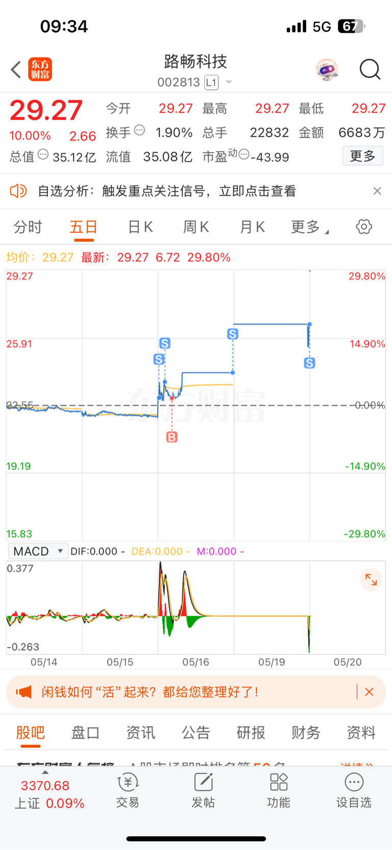 $路畅科技(SZ002813)$ 我佩服庄家把我洗出来了