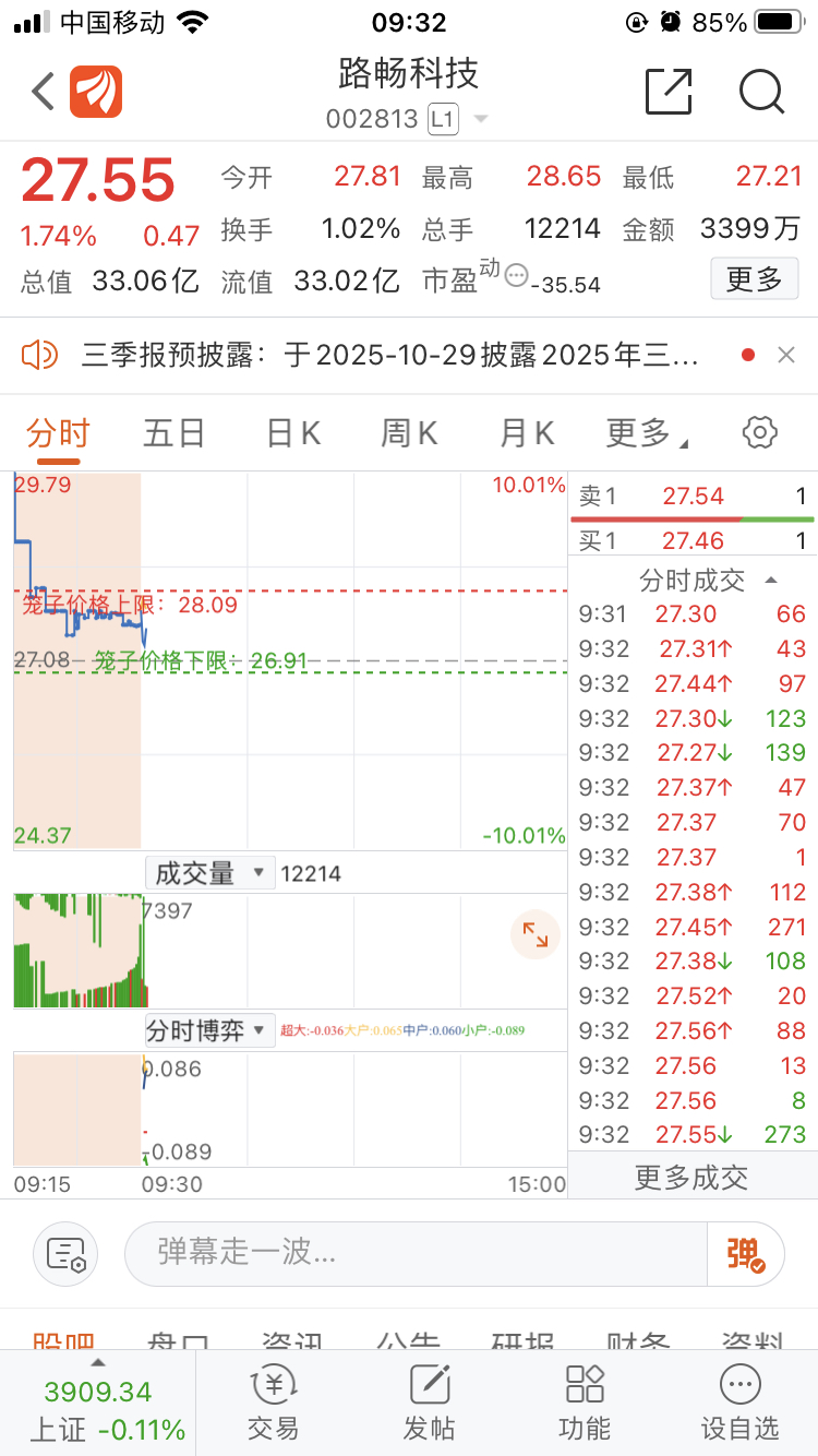 $路畅科技(SZ002813)$ 啥时候冲到28.65的?这个线最高点怎么都没上去