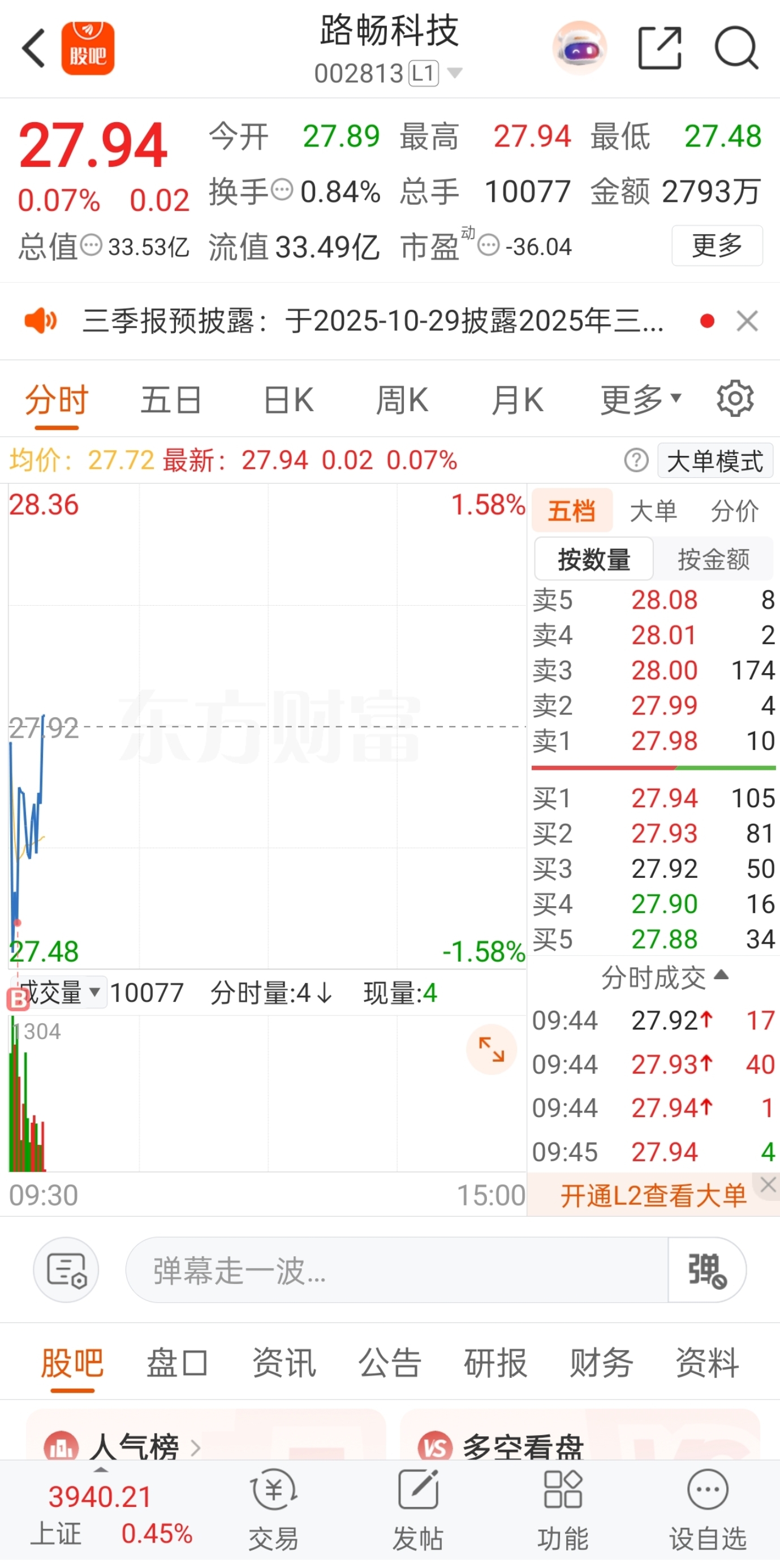 早盘水下低吸介入了$路畅科技(SZ002813)$