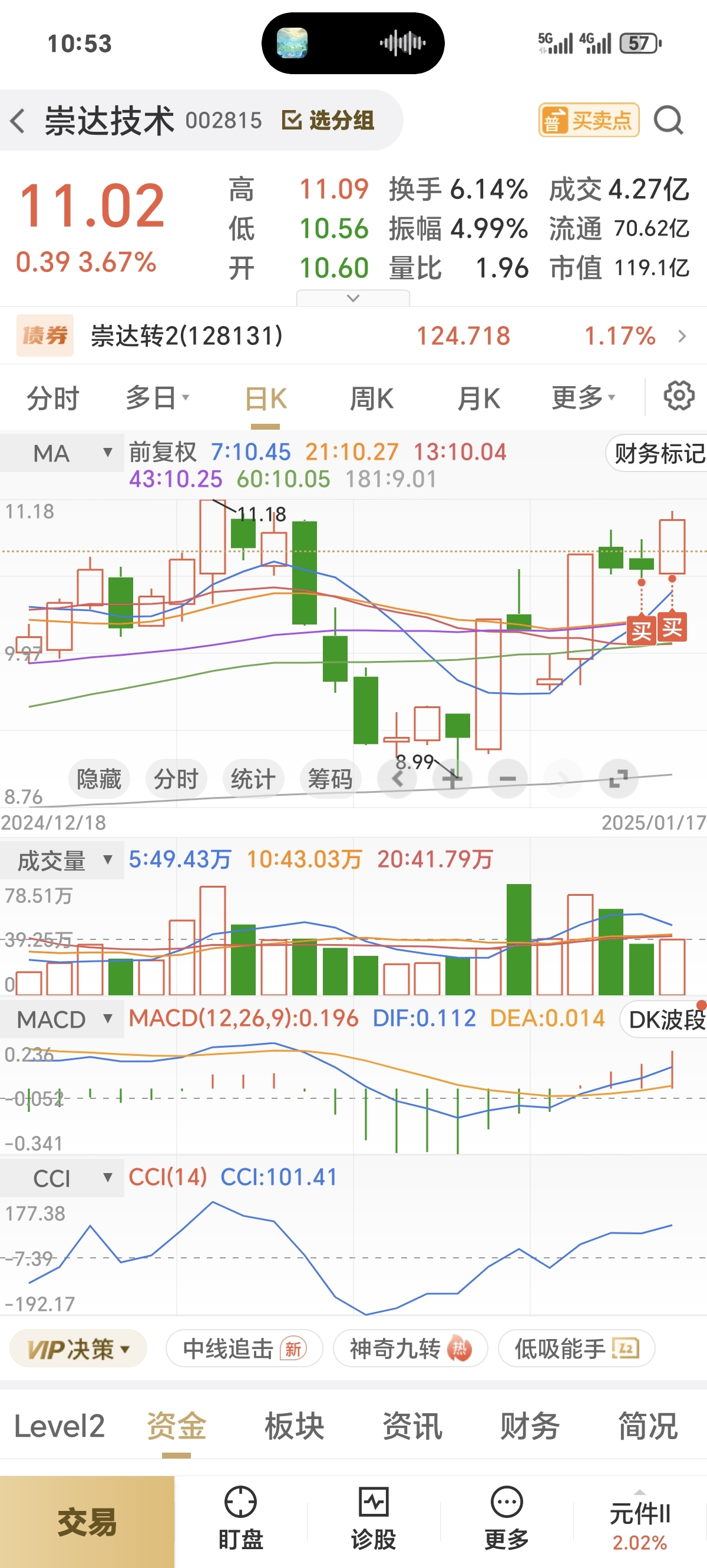$崇达技术(SZ002815)$ 今天和昨天分别在低位时买了点,不知道这股怎样,本人技术差,时间少,年底忙,又不敢买高标股,所以选了这只不怎么涨的慢慢等,请问有长期持股或有研究过这股的兄弟帮帮忙看看这股好不好拿,感谢