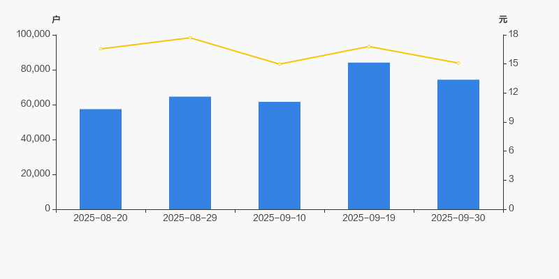 2025年8月20日至今,公司股东户数显著增长,区间涨幅为29.42%。2025年8月20日至2025年9月30日区间股价下降8.82%。