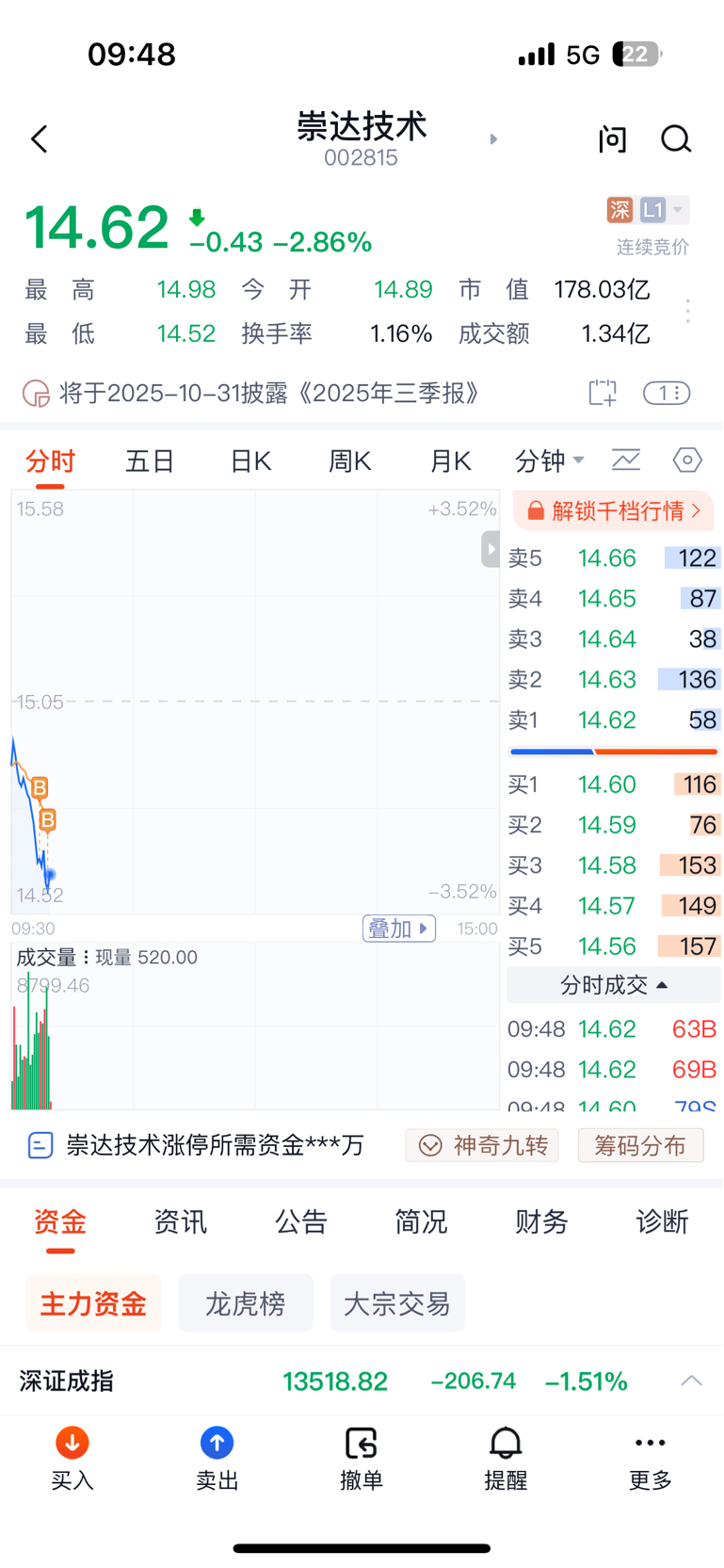 $崇达技术(SZ002815)$ 越跌越买,一辈子对你不离不弃