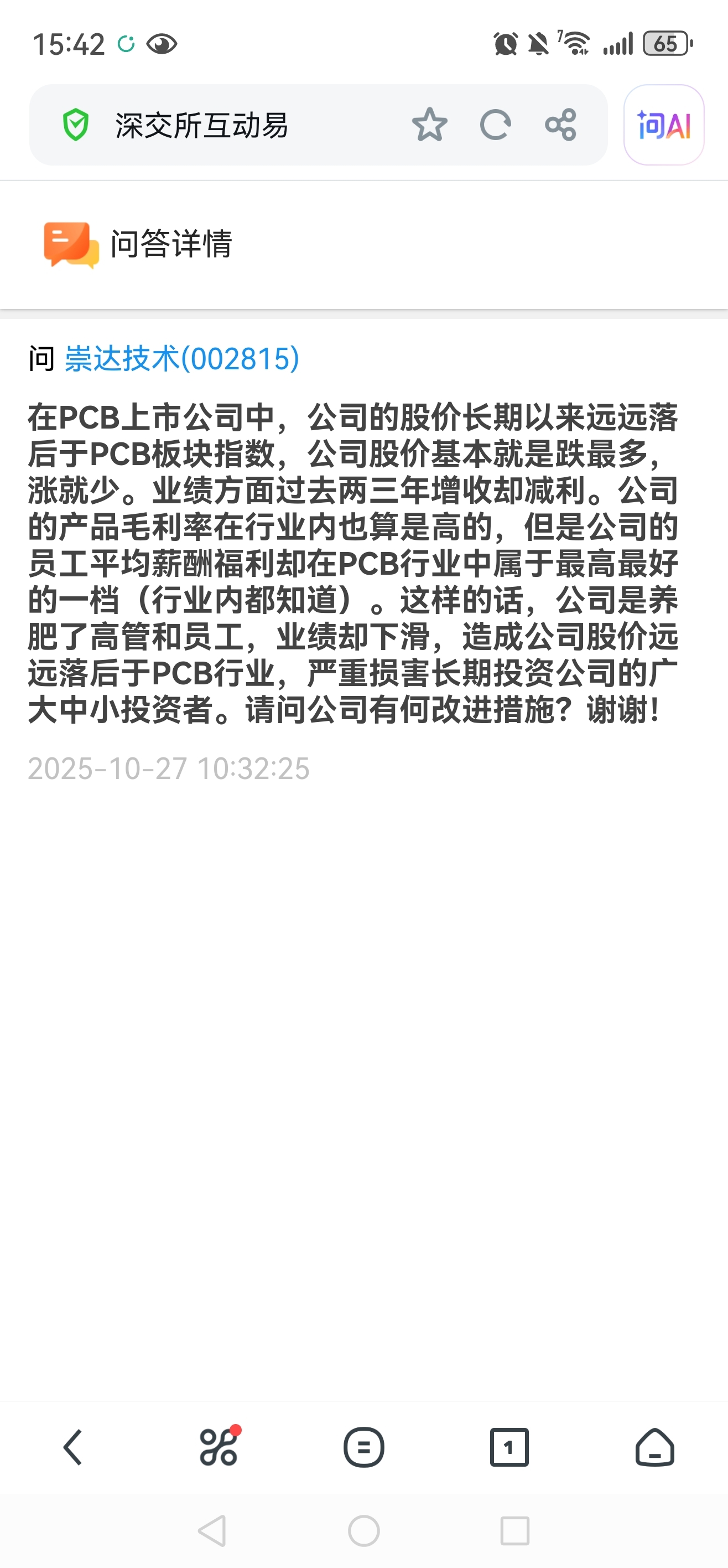 $崇达技术(SZ002815)$ 这个问题问的好犀利!原来崇达是赚的钱全部养肥了高管和员工。。。