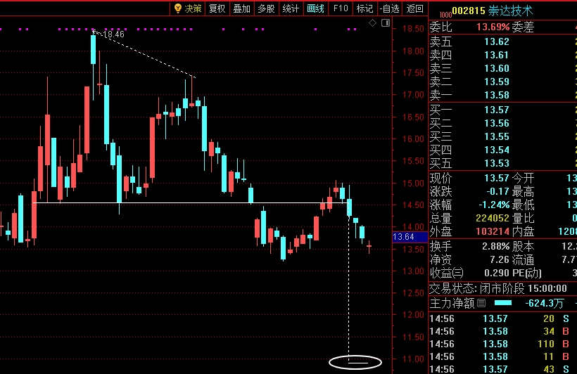 反弹要过14.5才行,如果破前低13.2就要到10.9附近,以上纯鼠胡诌