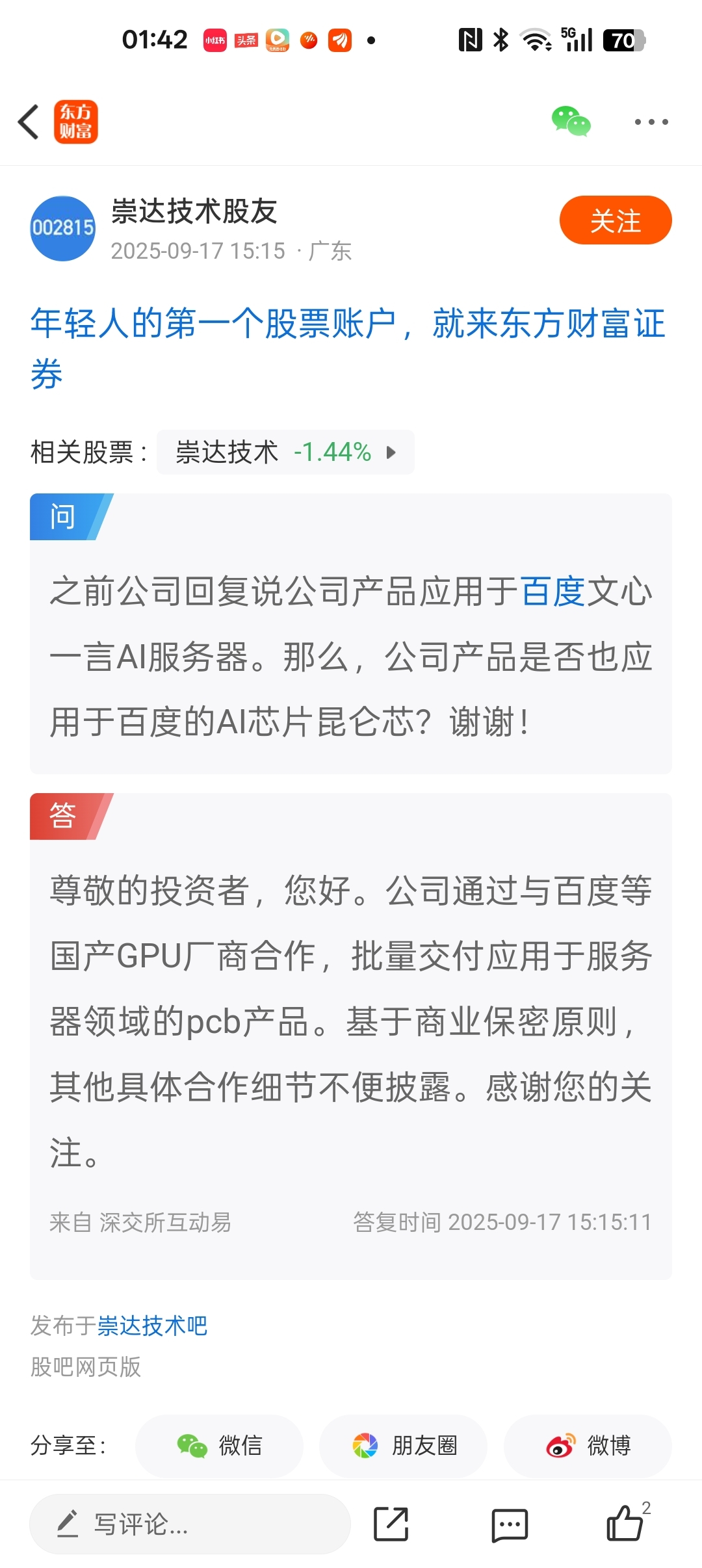 $崇达技术(SZ002815)$