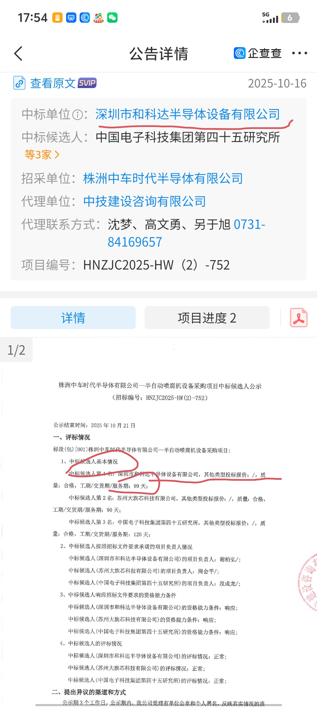 $*ST和科(SZ002816)$ 和科达半导体又中标啦,今年摘帽稳了,恭禧本次下跌调整没弃股抛筹坚守的价值投资人。。。。。。