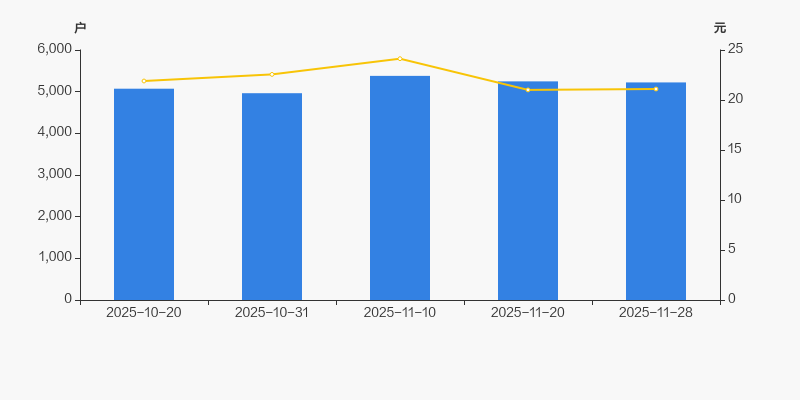2025年10月20日至今,公司股东户数有所增长,区间涨幅为2.98%。2025年10月20日至2025年11月28日区间股价下降3.65%。