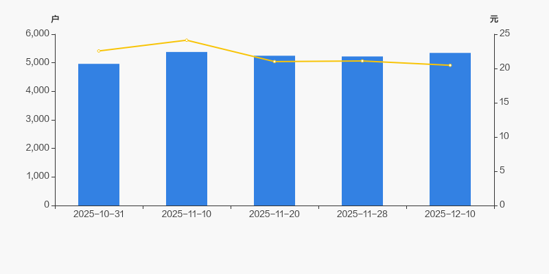 2025年10月31日至今,公司股东户数有所增长,区间涨幅为7.72%。2025年10月31日至2025年12月10日区间股价下降9.26%。