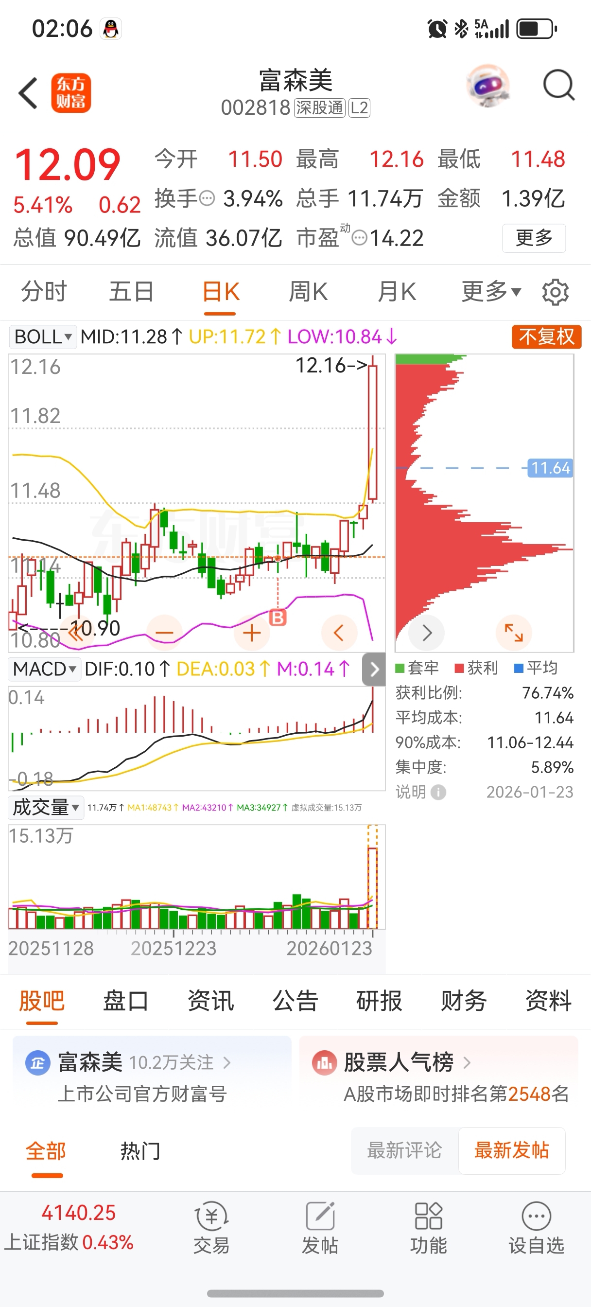 $富森美(SZ002818)$ 哈哈,1000股的彩票,看能收多少?