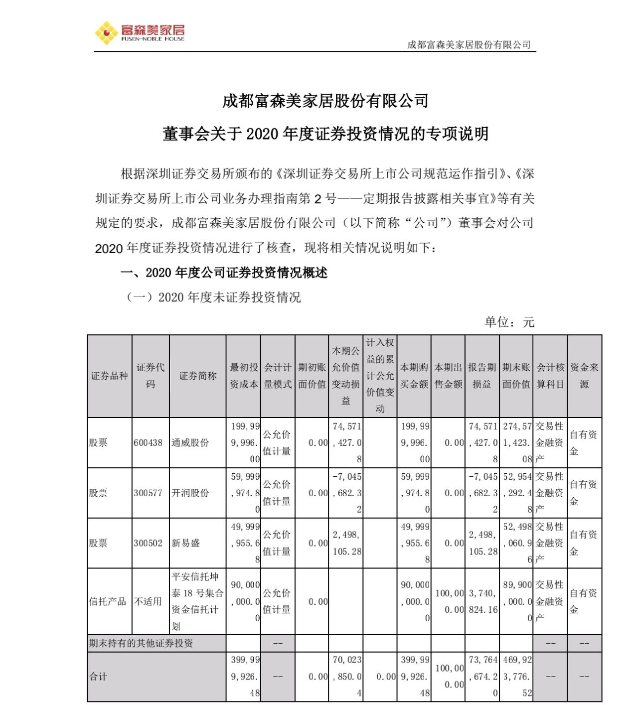 富森美2020年投资了新易盛0.26的股权,按照现在新易盛3800亿元市值这部分