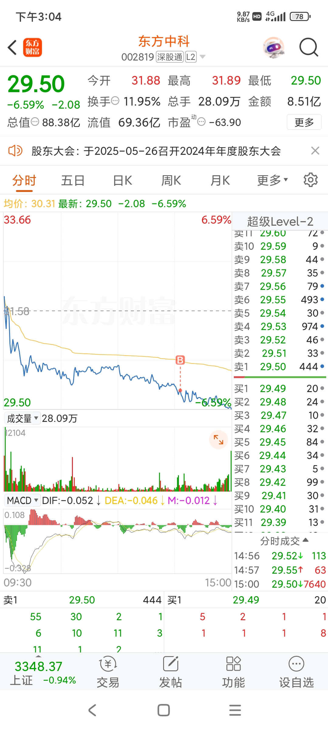 $东方中科(SZ002819)$ 忍了一天,2点一买大盘就跳水,这也太给面子了吧,给我亏麻了