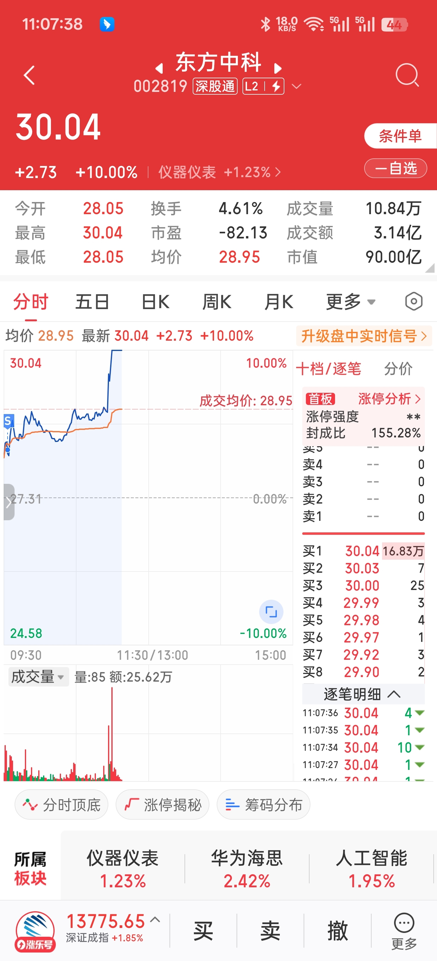 $东方中科(SZ002819)$ 差我这几毛钱?????
