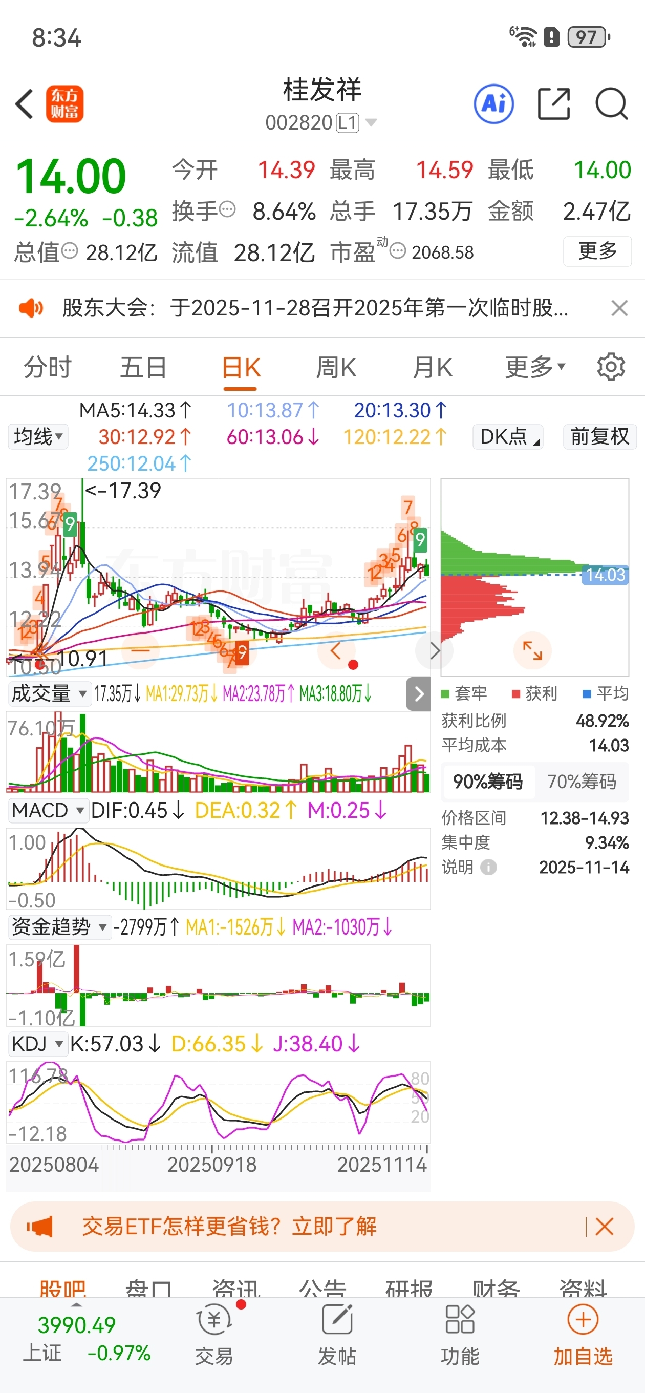 $桂发祥(SZ002820)$ 上峰不死,下跌不止哦