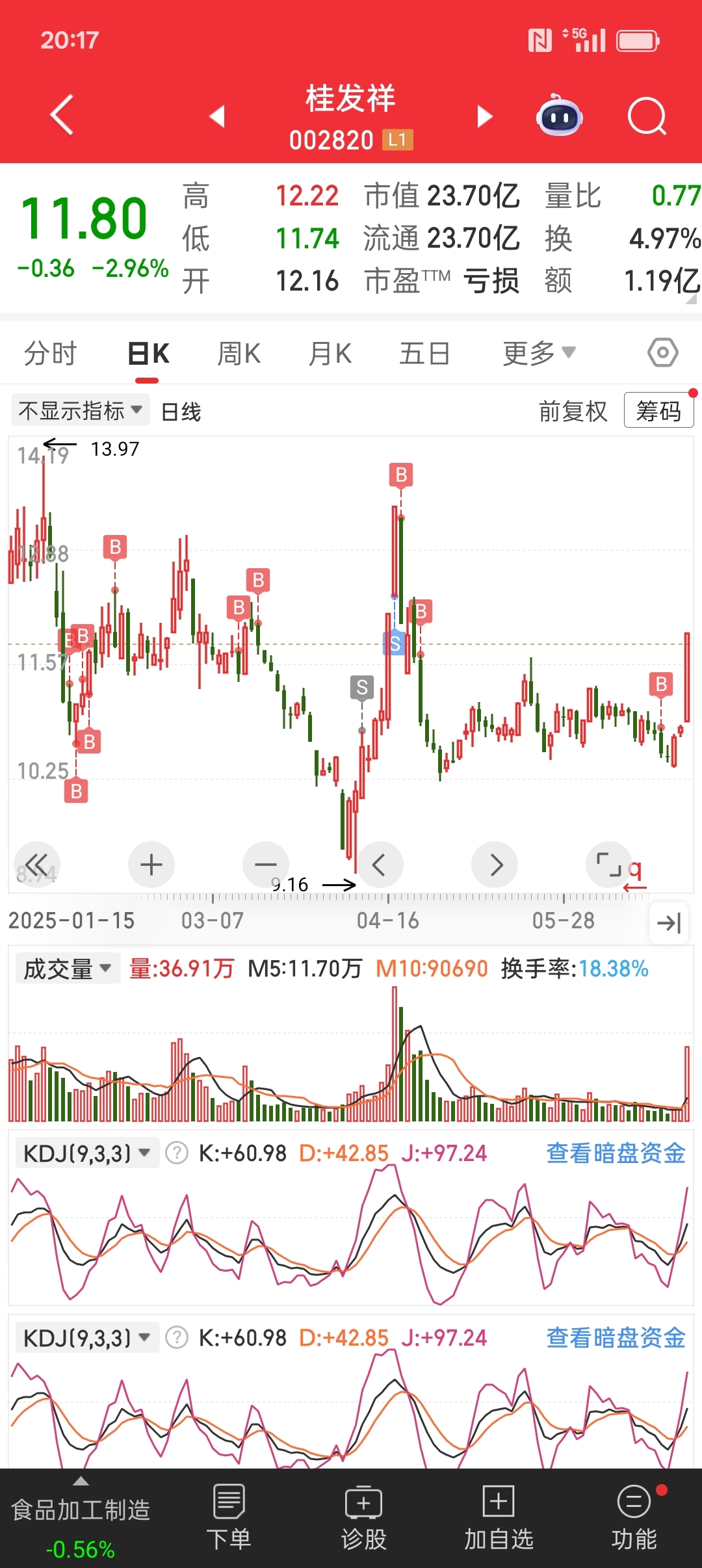 $桂发祥(SZ002820)$ 终于又要跌回买点了。11以下准备建仓,你们这些个新韭菜不知道股市的厉害,炒股B点在于一个“等”字。当然如果五千多支股票您独爱大麻花 那就没有办法了