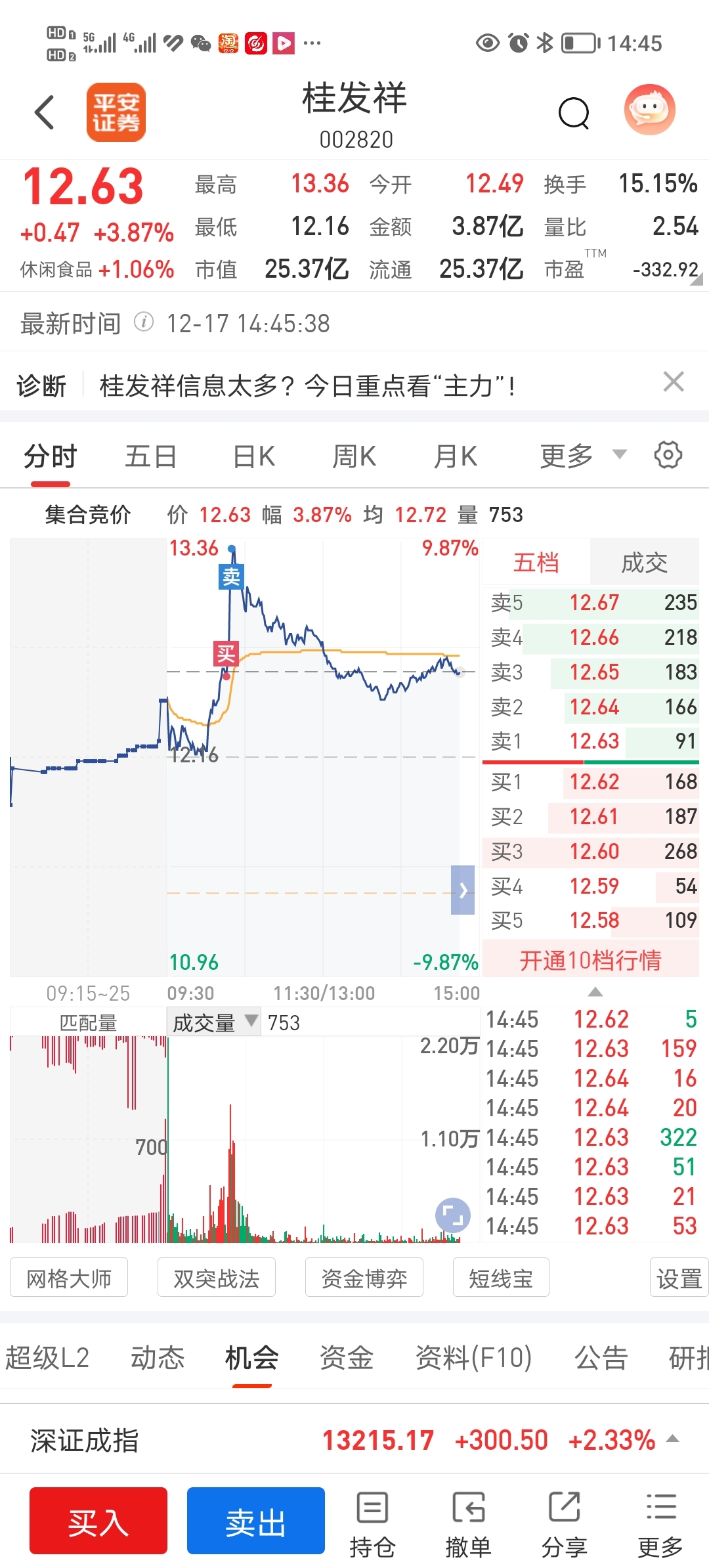 $桂发祥(SZ002820)$ 最高点出了,昨天进来,今天爆拉3个点加仓,做了一个完美的T。