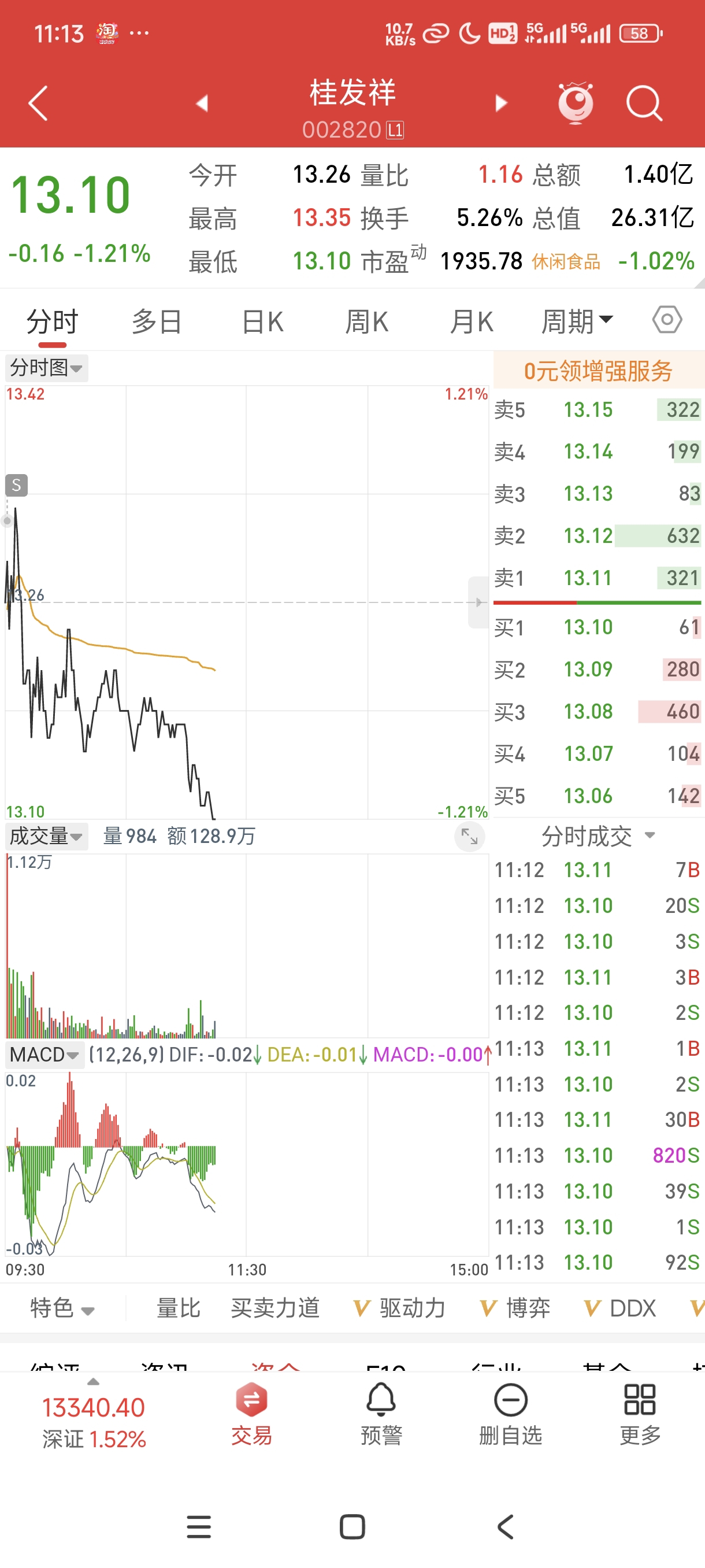 $桂发祥(SZ002820)$ 知道你的套路,早上都跑了