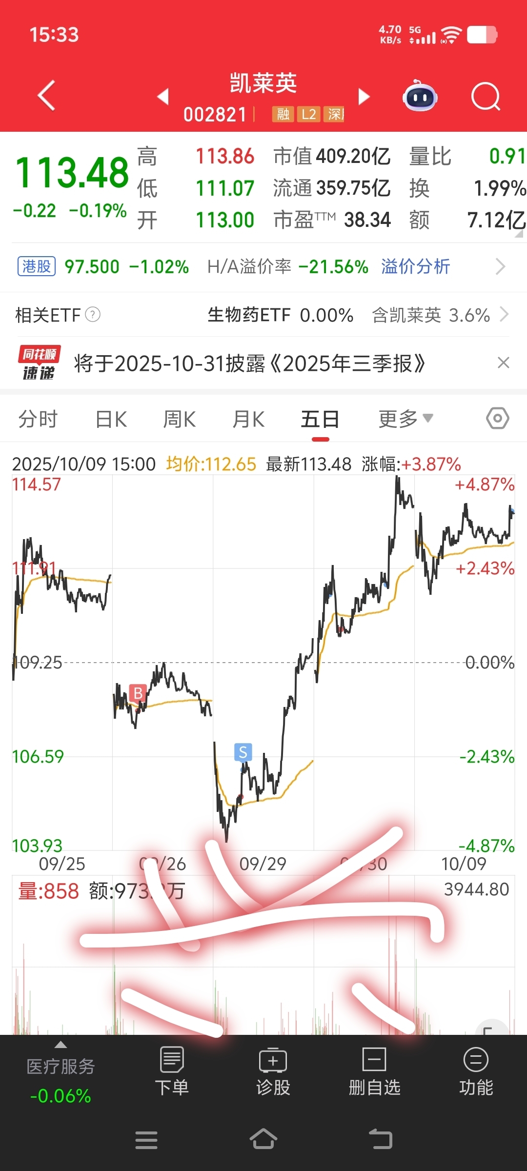 凯莱英都抛了等跌了再买不跌就算了手里还有两个创新型的股票不怕卖飞