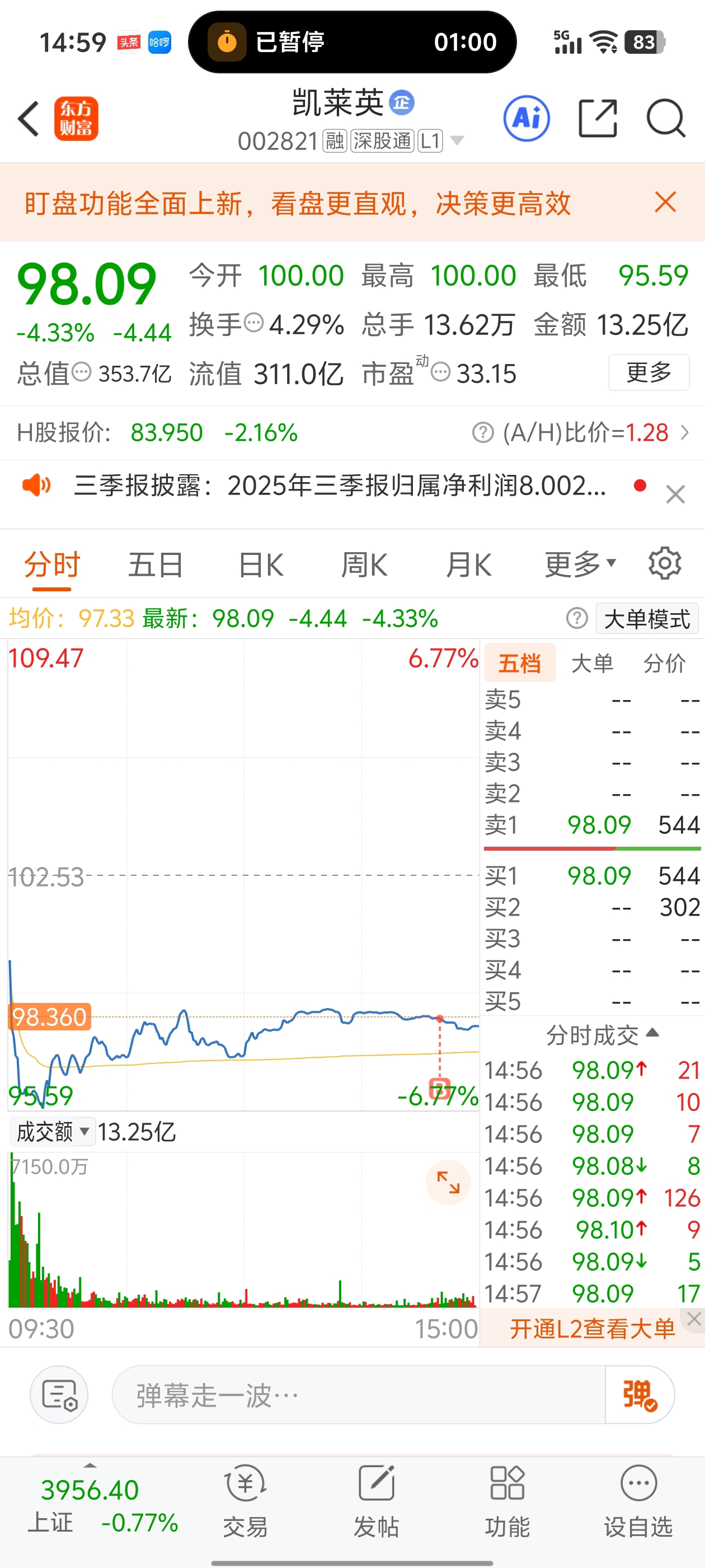 $凯莱英(SZ002821)$  昨天割了凯子去药名,今天割了药名近凯子