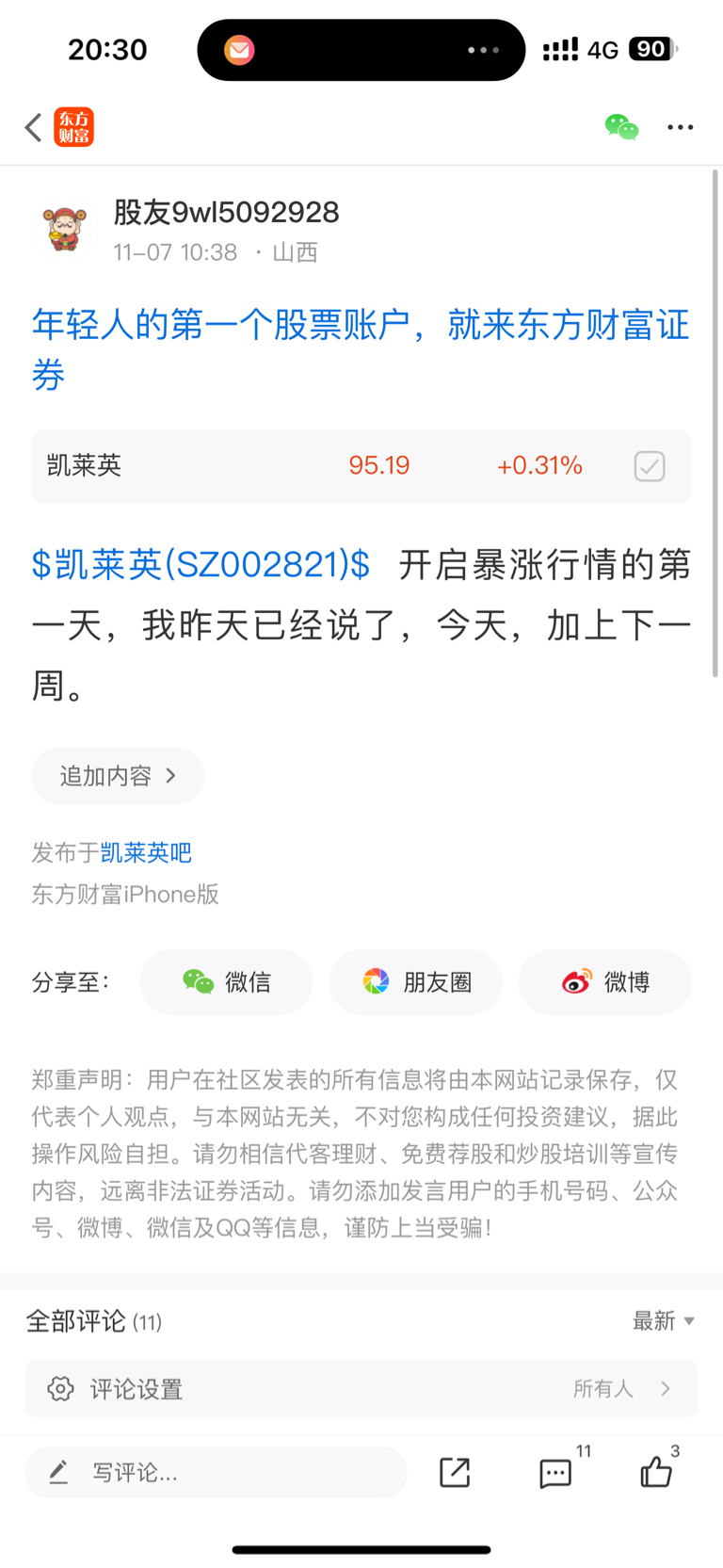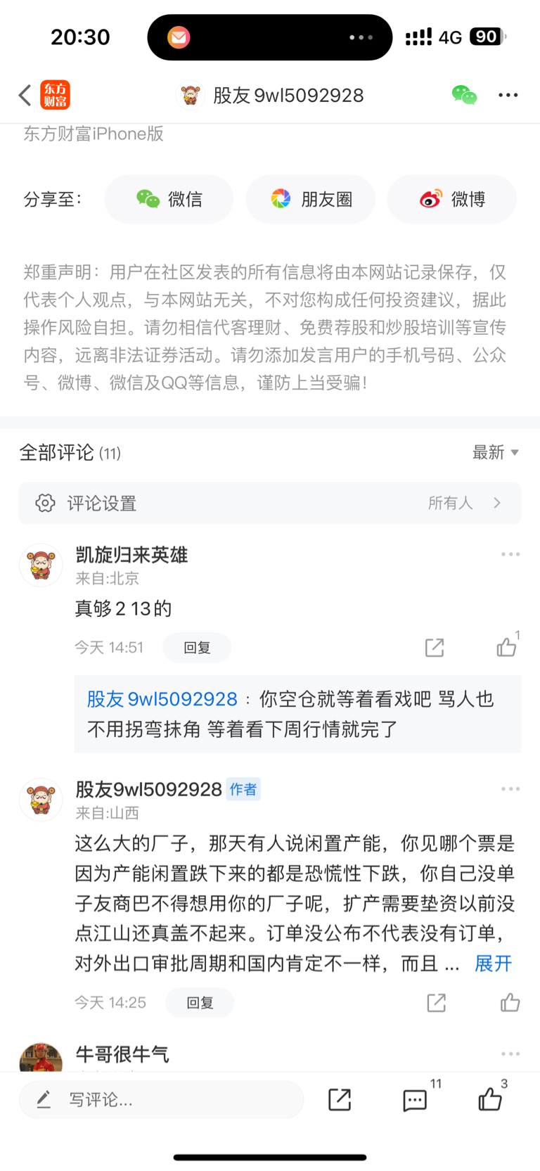 温馨提示: 1.根据《证券法》规定,禁止编造、传播虚假信息或者误导性信息,扰乱证券市场;2.用户在本社区发表的所有资料、言论等仅代表个人观点,与本网站立场无关,不对您构成任何投资建议。用户应基于自己的独立判断,自行决定证券投资并承担相应风险。《东方财富社区管理规定》