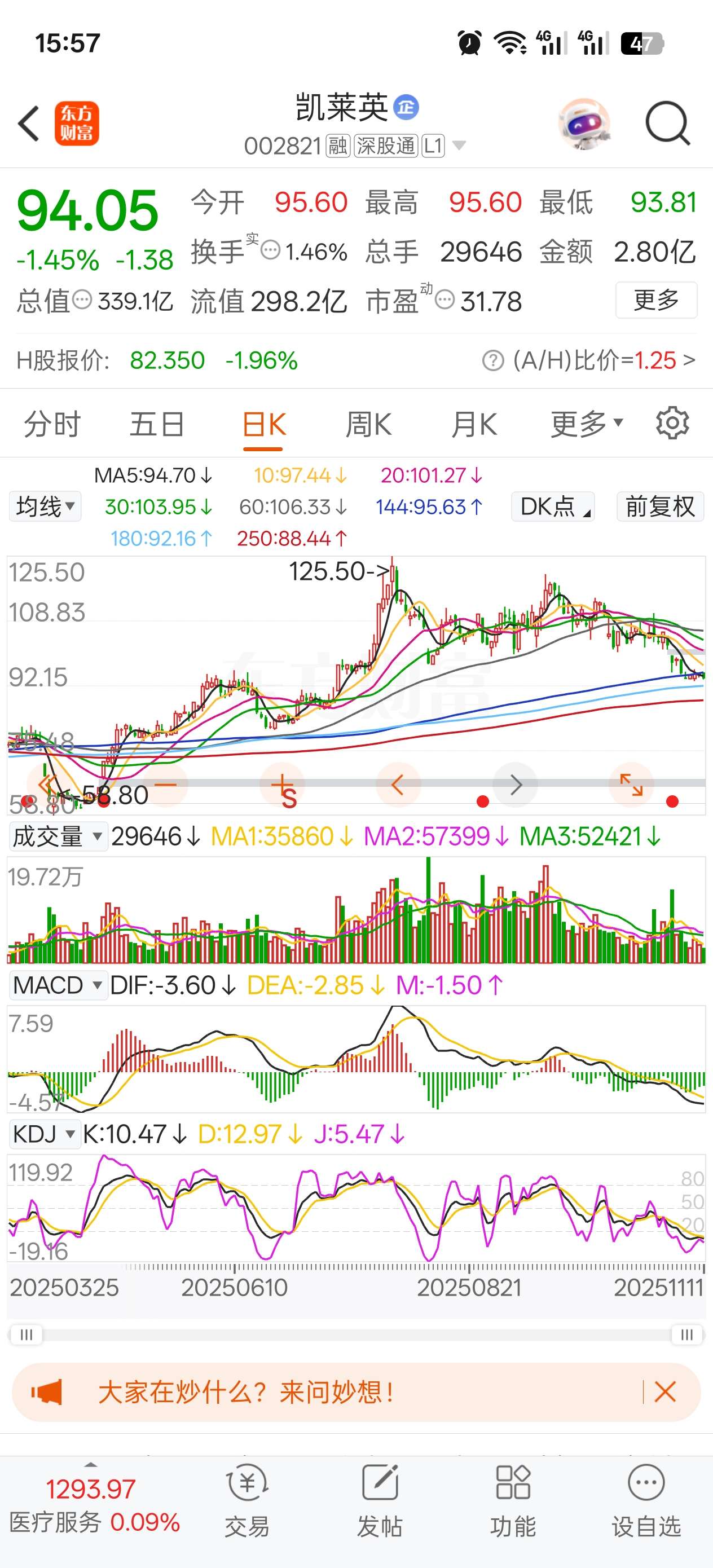 $凯莱英(SZ002821)$ 下面67的缺口年内肯定是要补的,抄底的先别急,明年3月底发年报,有的是时间跌。