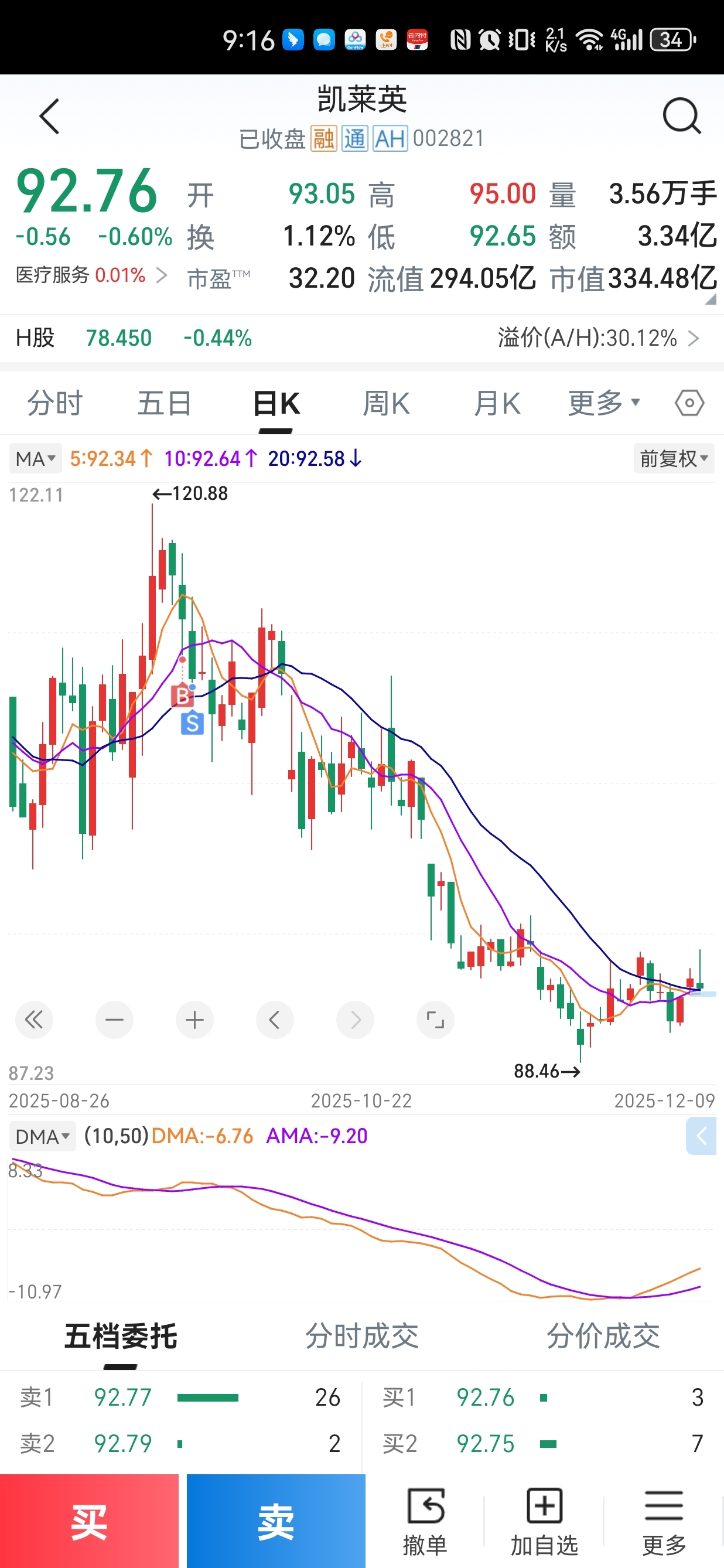 $凯莱英(SZ002821)$ 买了1000股,卖了100股,,现在扛不住了大神们给个意见,明天割不割